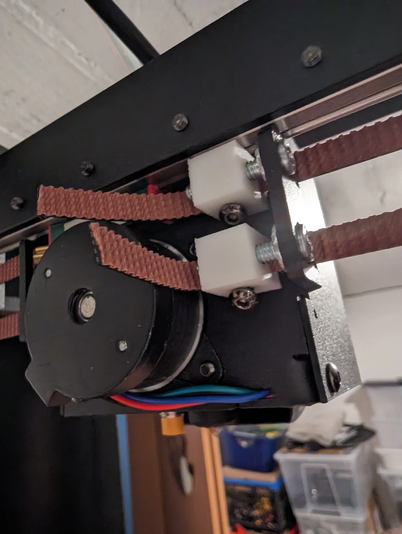 Trên KLP1, bạn lúc nào cũng phải tháo cụm hotend ra mới với tới được mấy con ốc giữ dây belt cố định, phòng khi bạn muốn thay belt hoặc tăng độ căng. Việc này thiệt sự rất khó chịu và nói thẳng ra là thiết kế không ổn.
