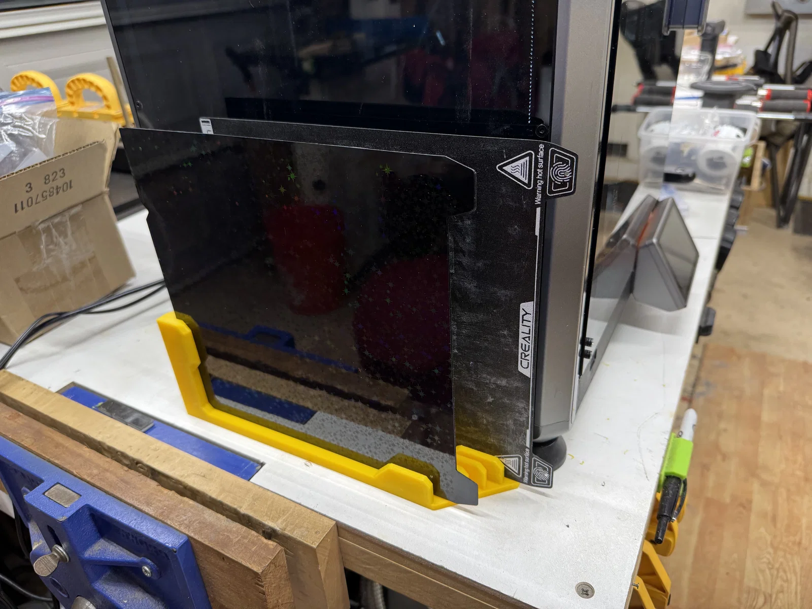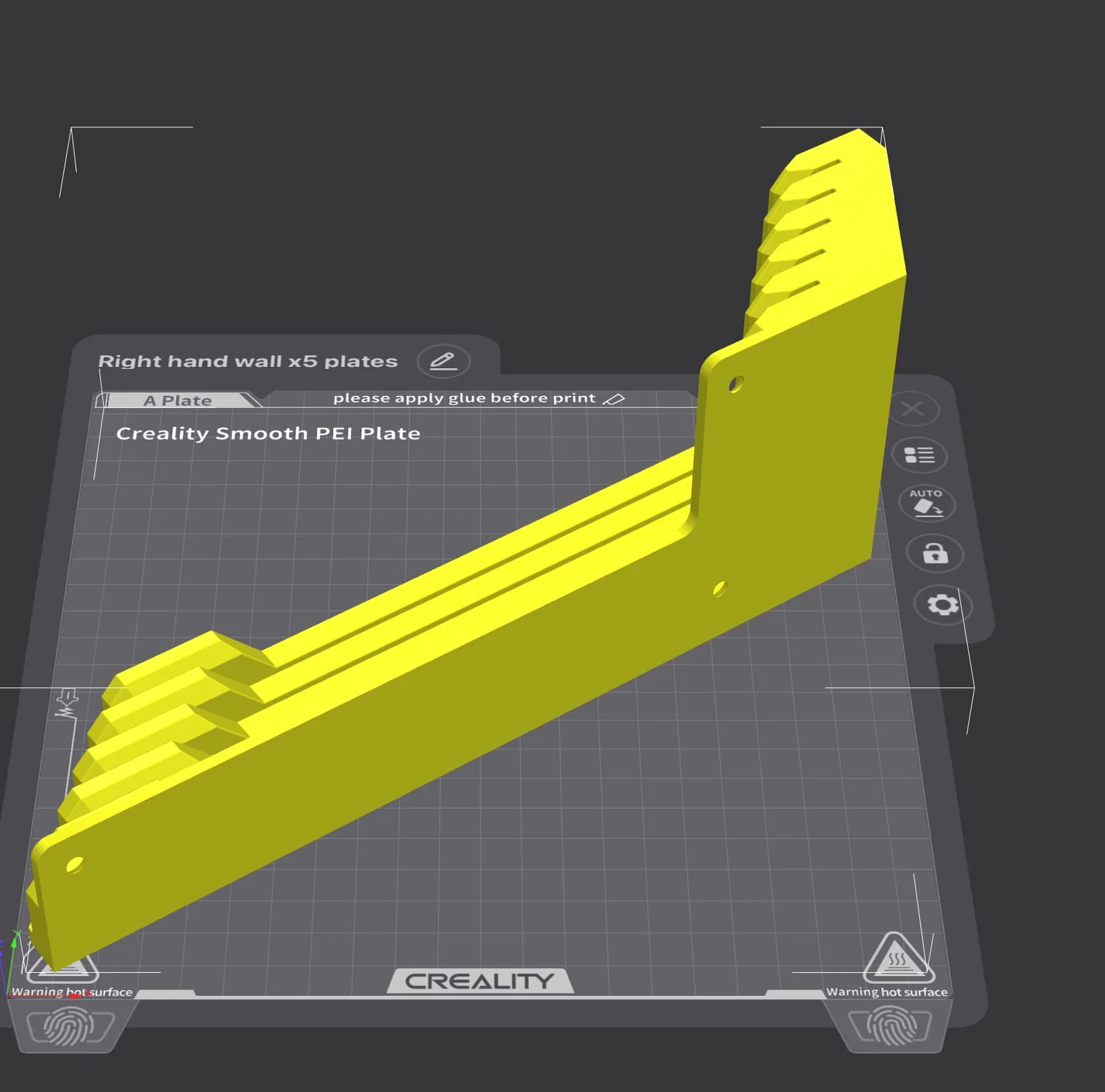 Bản remix giá giữ build plate sheet 5 khe, được chỉnh để in vừa khổ bàn in K1C/K1. Sau khi làm sạch rãnh, kể cả tấm dán holographic cũng vừa. In PLA, nhanh, không cần support hay brim.