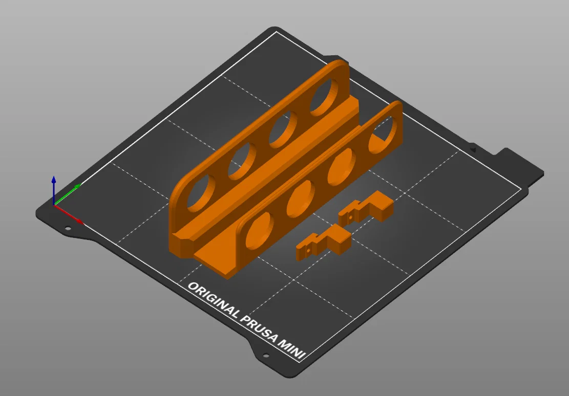 Mình làm cái rack cỡ này để vừa khay in của Prusa Mini. Mình cũng có thể làm bản lớn hơn sau, cho những máy có print bed to hơn.