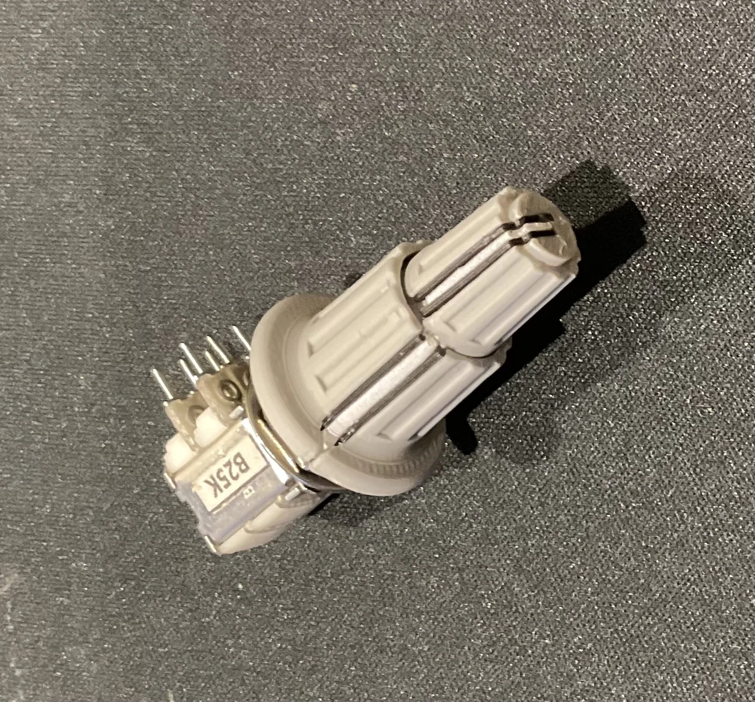 Do trục potentiometer lớn che mất đường sáng nên rất ít ánh sáng lên được vạch chỉ thị của núm trên.
