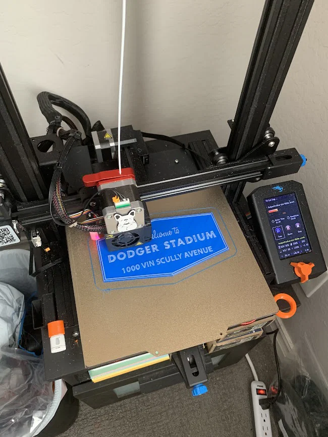 Mẫu bảng hiệu lối vào Dodger Stadium, có dòng địa chỉ của cố BLV huyền thoại Vin Scully. Thiết kế bằng Fusion 360 và in 2 màu, đổi filament sau base layers. Kích thước 170x90x5mm, layer 0.20mm trên Ender 3v2.