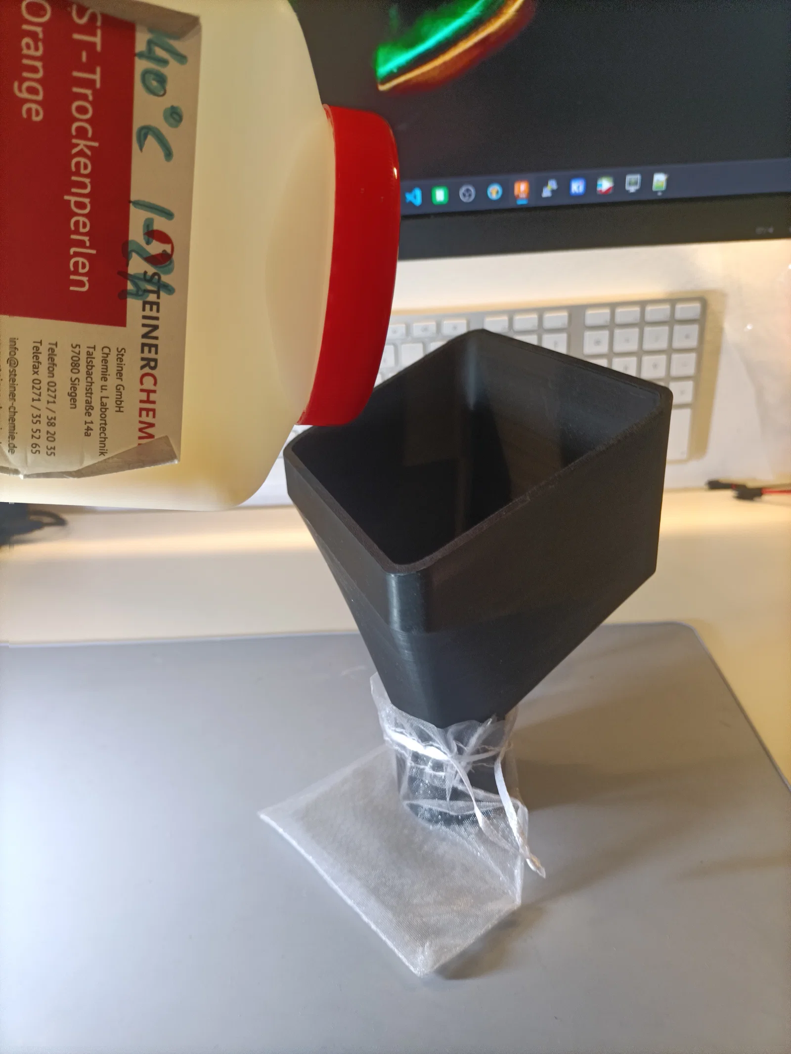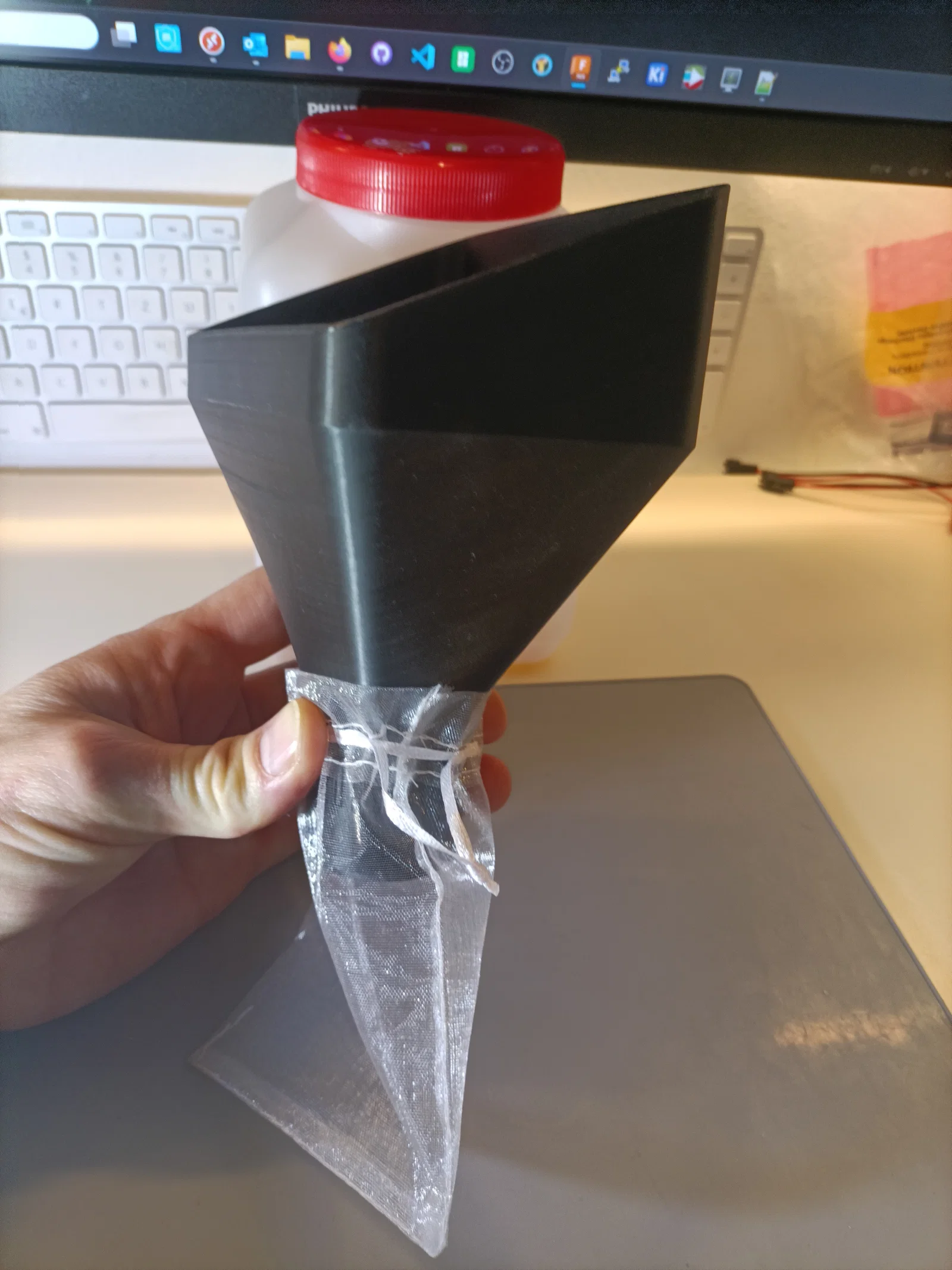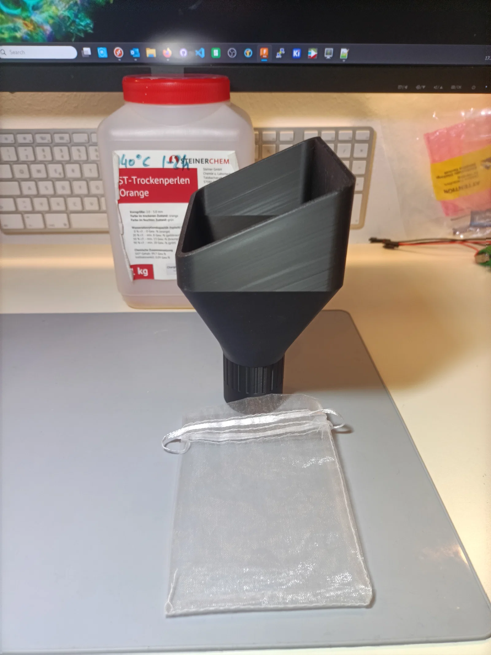 Mình kiếm hoài mà không thấy cái phễu nào thực tế, kiểu đổ hạt hút ẩm (desiccant pearls) vô túi vải gạc (gauze bag) mà không bị rơi vãi mấy hạt nhỏ li ti. Như thường lệ, mình có đính kèm file fusion-f3d để mọi người chỉnh sửa/tùy biến.
