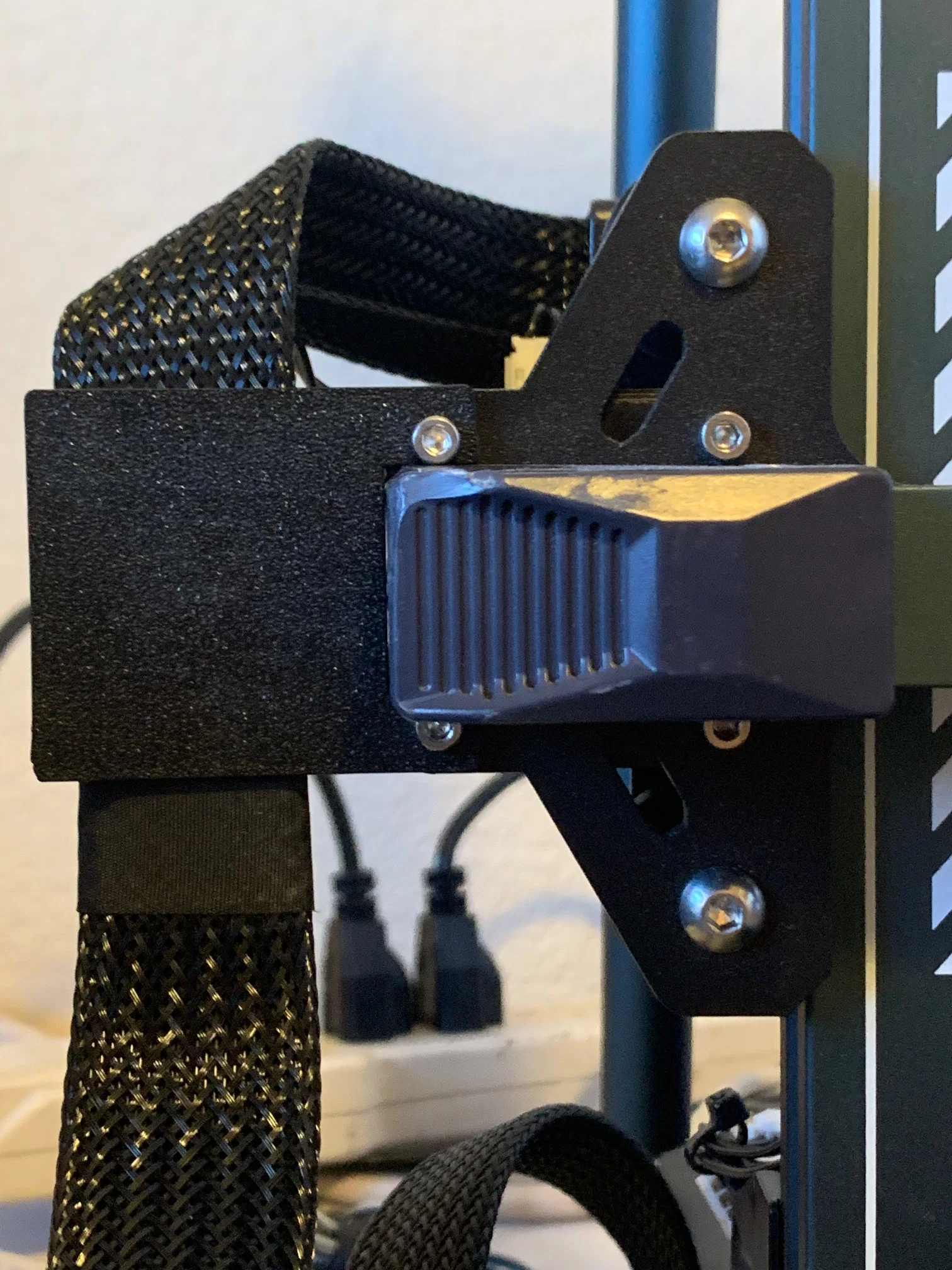 Nếu dây X + hotend của bạn đang chạy khá ổn và bạn không thấy cần dùng cable chain, nhưng chỉ cần cho dây đi xuống thay vì văng ra ngoài để tiết kiệm không gian hoặc tránh bị vướng/cọ, thì bạn có thể dùng cái clip này.