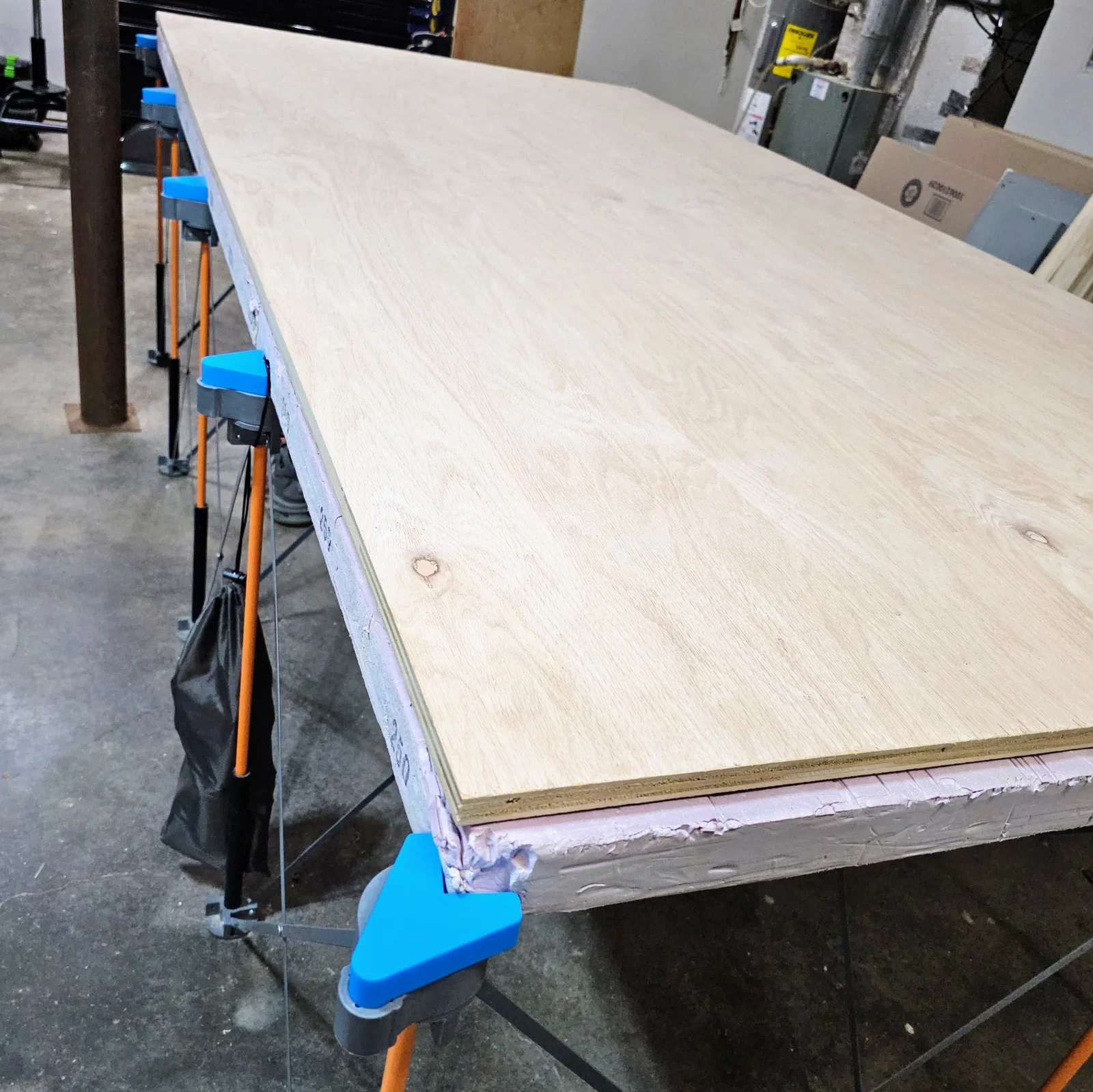 Bộ adapter/kẹp đơn giản cho bàn BORA Centipede giúp giữ cố định tấm plywood hoặc insulation foam (khổ 4x8ft), hỗ trợ canh bàn vuông và làm việc ổn định hơn. In nhanh, không cần support, gắn vào là dùng.