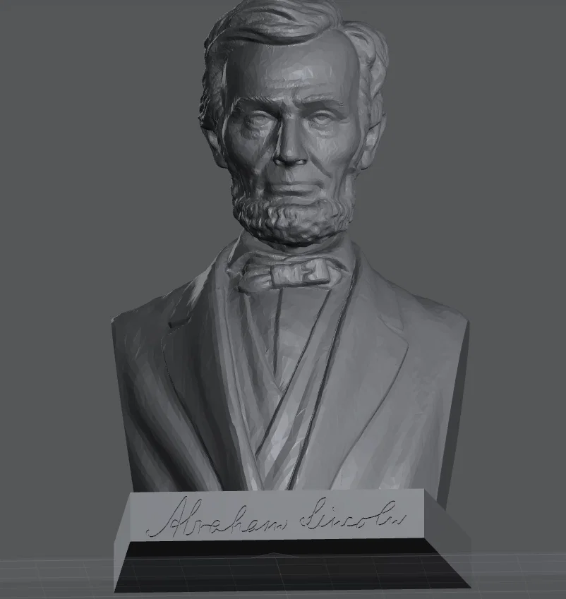 Bản remix từ bust Lincoln do Tycho điêu khắc số, nay được thêm chữ ký của Abraham Lincoln trên phần đế (còn chỗ cho name plate). Khi so với 3D scan life mask, mẫu sẽ cỡ người thật nếu scale khoảng 550%.