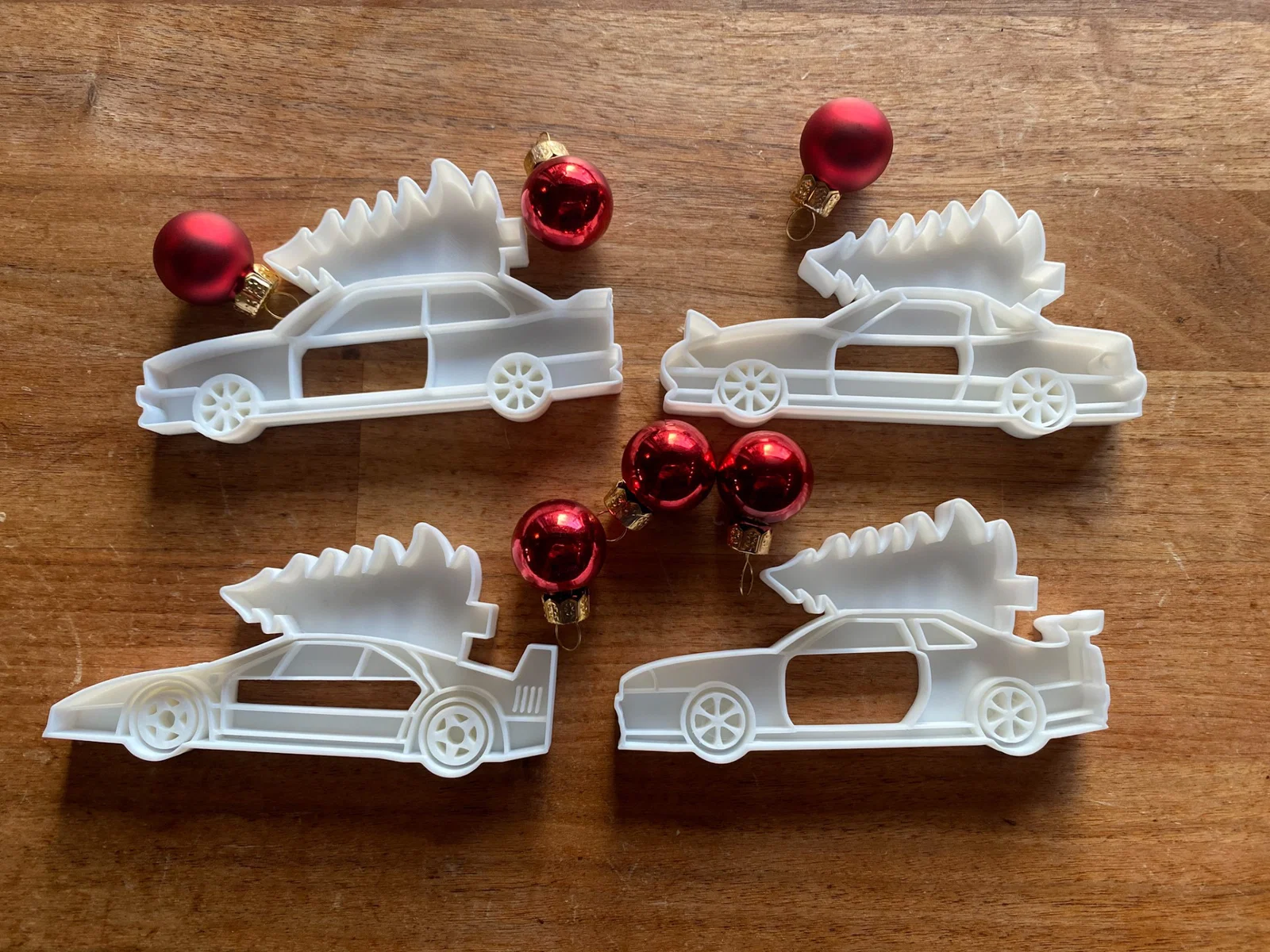 Bộ “chistmas car cookie cutter collection” gồm 4 khuôn cắt bánh quy hình xe: Nissan R34, Mazda MX-5, Ferrari F40 và BMW E30 M3. Thiết kế vui, dễ dùng, trẻ con rất thích; mỗi khuôn dài khoảng 10 cm.