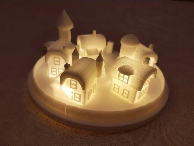 Việc lắp đặt cũng khá đơn giản và thú vị cho những người yêu thích 3D printing. Bạn chỉ cần in phần đế và các ngôi nhà, sau đó luồn dây đèn LED qua các khe rỗng đã được tạo sẵn ở mặt dưới đế để ánh sáng chiếu xuyên qua các ngôi nhà, tạo hiệu ứng thị giác cực kỳ bắt mắt. Đây không chỉ là một vật phẩm trang trí bàn làm việc, kệ sách hay tủ tivi mà còn có thể trở thành món quà tặng ý nghĩa cho người thân, bạn bè nhân dịp Giáng sinh. Sự kết hợp giữa kỹ thuật in 3D và ánh sáng LED sẽ biến góc phòng nhỏ của bạn trở nên sinh động và đậm chất nghệ thuật hơn bao giờ hết.