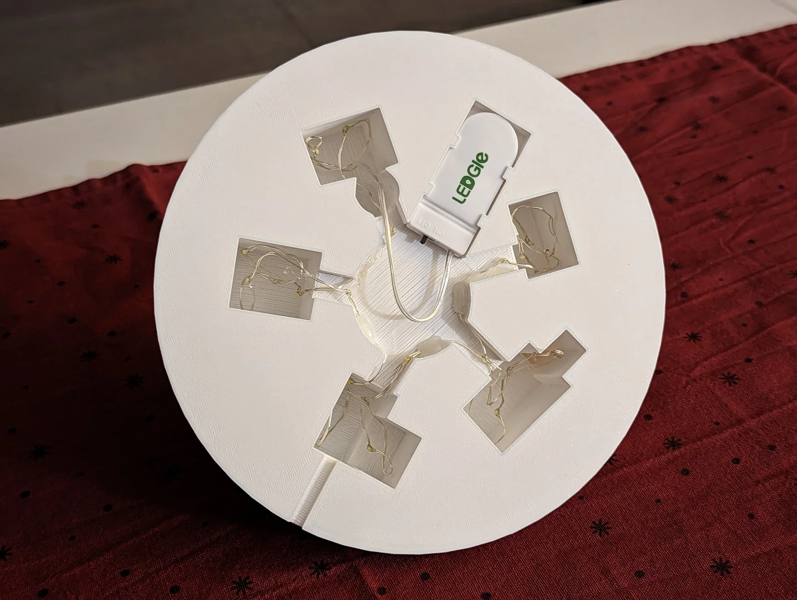 Nhớ dùng generic box (cho nguồn điện rời) và/hoặc battery compartment.stl (cho dải LED mini như hình) làm negative volumes trong slicer của bạn!