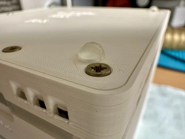Mình cũng có in một phần bằng filament trong suốt để nhìn được LED trạng thái nhấp nháy, và thêm hỗ trợ cho nút nguồn của RPi, để bạn có thể bấm bằng một dụng cụ (bút hoặc tăm). Dùng dụng cụ sẽ giúp tránh bấm nhầm rồi tắt nguyên con NAS :)