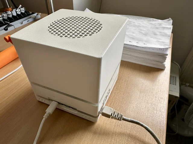 Ngoài ra nếu bạn cần một con NAS thật yên tĩnh, mình có thiết kế thêm “silencer”: chỉ cần in ra rồi đặt lên trên nắp case. Mình không cố định nó, nhưng bạn có thể dán keo nếu muốn. Nó sẽ giảm tiếng ồn luồng gió thêm nữa mà thông gió vẫn ổn (v11_top_air.stl).
