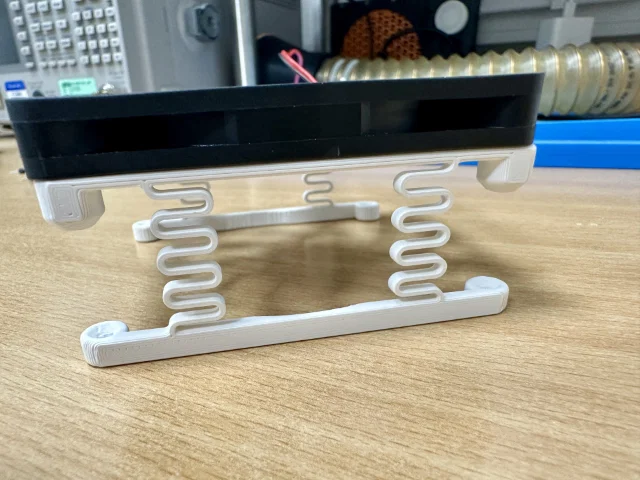 Dù sao thì mình đã xử lý bằng cách thiết kế 2 cái giá đỡ quạt nhỏ có hiệu ứng lò xo,