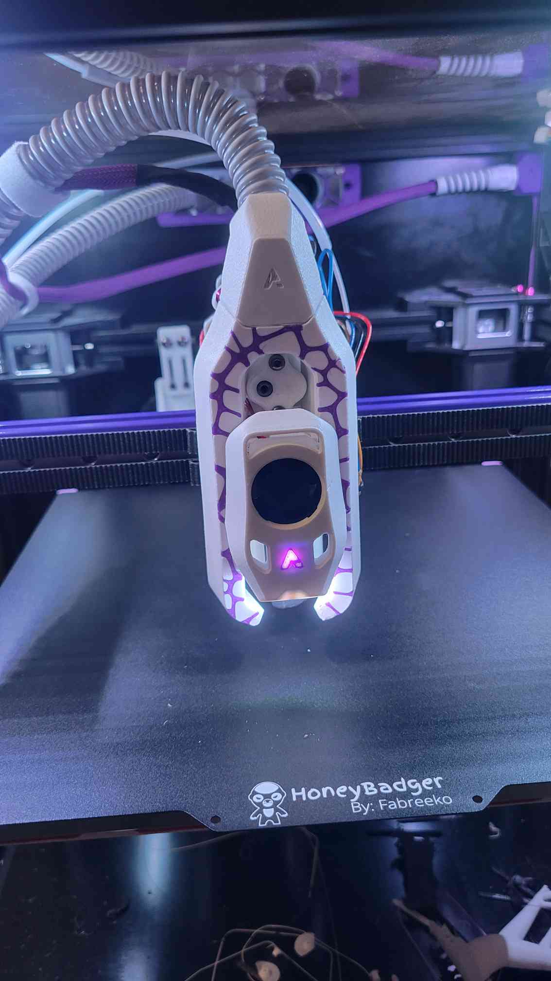 Bản mod Archetype breakneck cho hotend Lancer, extruder Snakebite gắn flat mount, Carto/Beacon và ống CPAP 15mm. Có kèm một bản chỉnh sửa của Snakebite với idler bearing trơn và idler BMG. Thiết kế lại ốp quạt hotend để dễ gắn LED tròn WS2812B (LED SB tiêu chuẩn), kèm thêm tấm chặn sáng cho diffuser trong trường hợp bạn dùng filament hơi trong/ánh xuyên. Thêm mount EBB36 cứng hơn với 4 điểm tựa tì vào PCB và 3 điểm bắt vào toolhead. Chỉnh mount probe Beacon/Cartographer để bổ sung công tắc hành trình X (X limit switch).