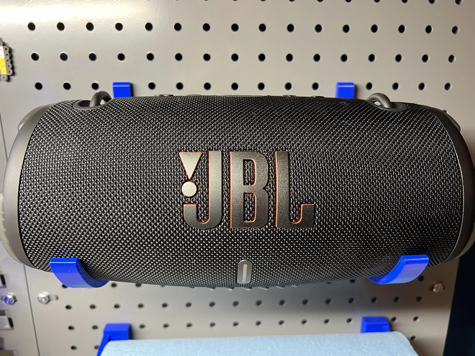 Mẫu JBL Extreme Pegboard Mount dùng để treo loa bluetooth JBL Extreme lên pegboard. Tương thích phiên bản 1–3, chuẩn lỗ pegboard cách nhau 1 inch. Khuyến nghị bật supports cho phần pegs. Infill 60%, PLA Hatchbox màu True Blue.