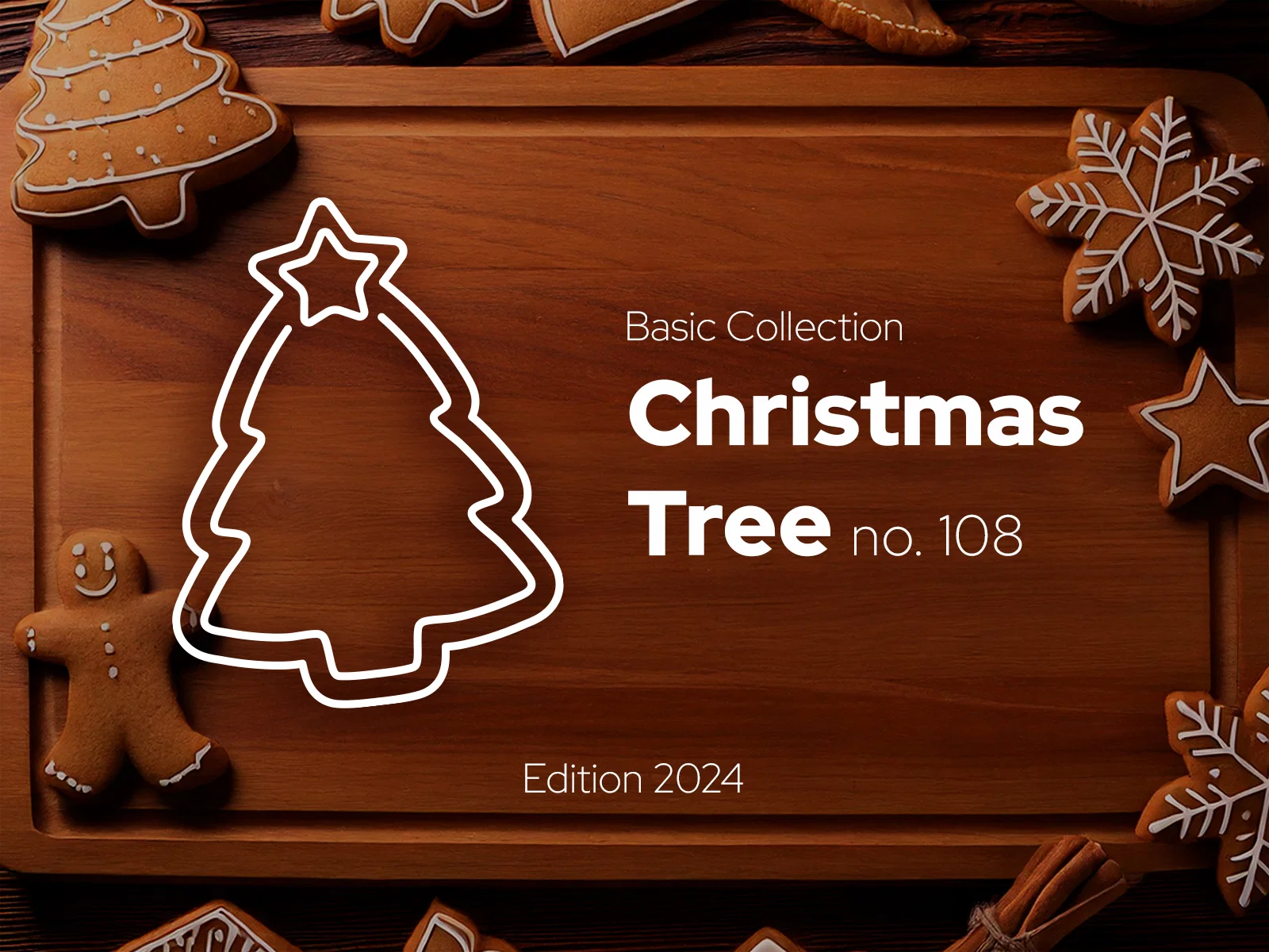 Tạo không khí Noel vui nhộn với khuôn cắt bánh gừng Cây Thông số 108 dạng 2-trong-1: cắt viền hoặc thêm chi tiết bên trong. Mép vát giúp cắt nhẹ tay; gợi ý bột dày 5 mm để hiện rõ họa tiết.