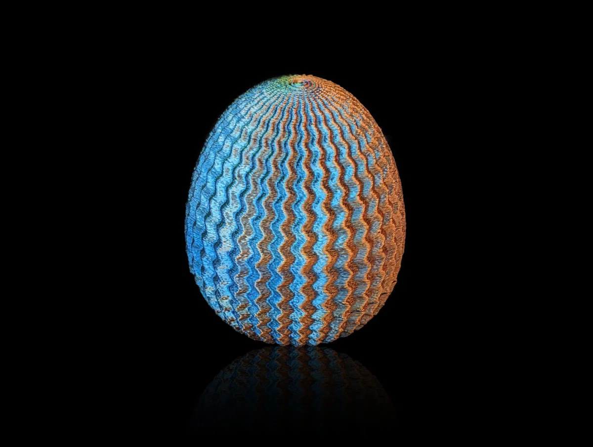 Hộp đựng dạng trứng kiểu mê cung, bên ngoài gân nổi như xương rồng. Giấu phần thưởng bên trong để thưởng cho ai giải được. In 2 mảnh, không cần supports; tối ưu cho PLA co-extrusion nhiều màu.