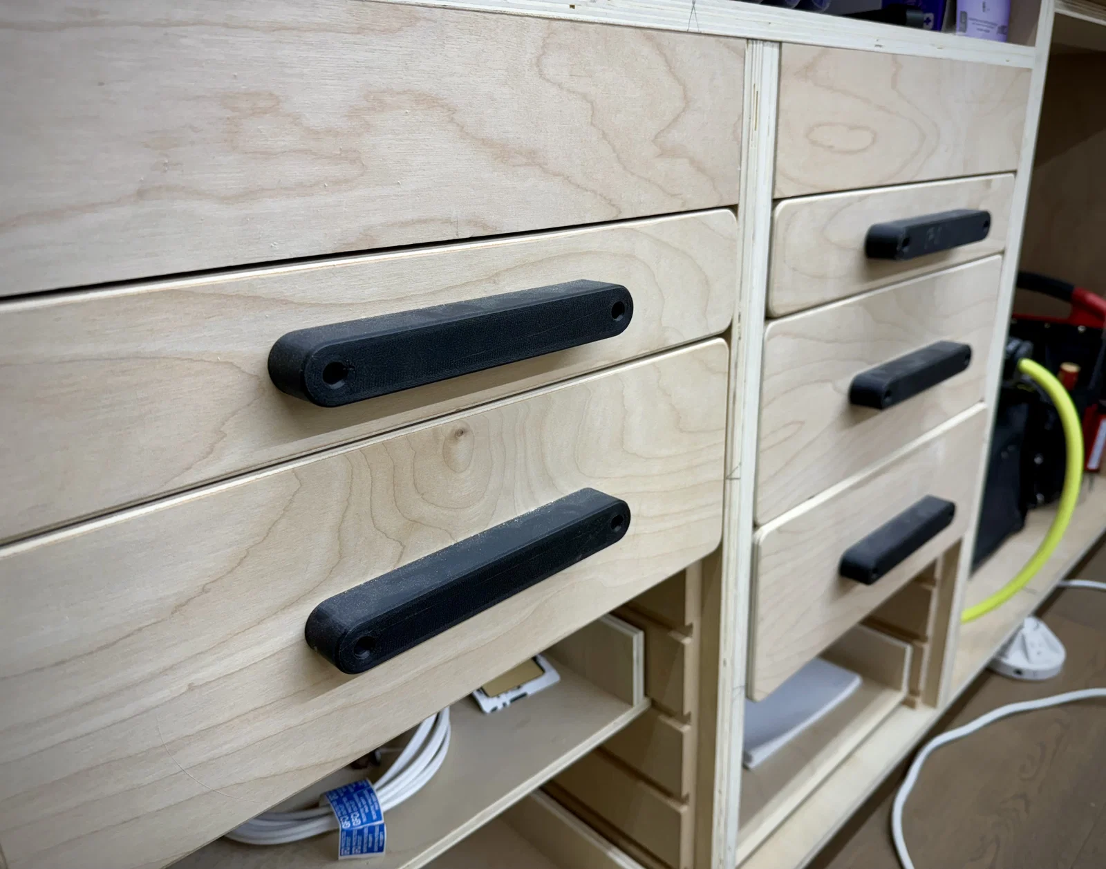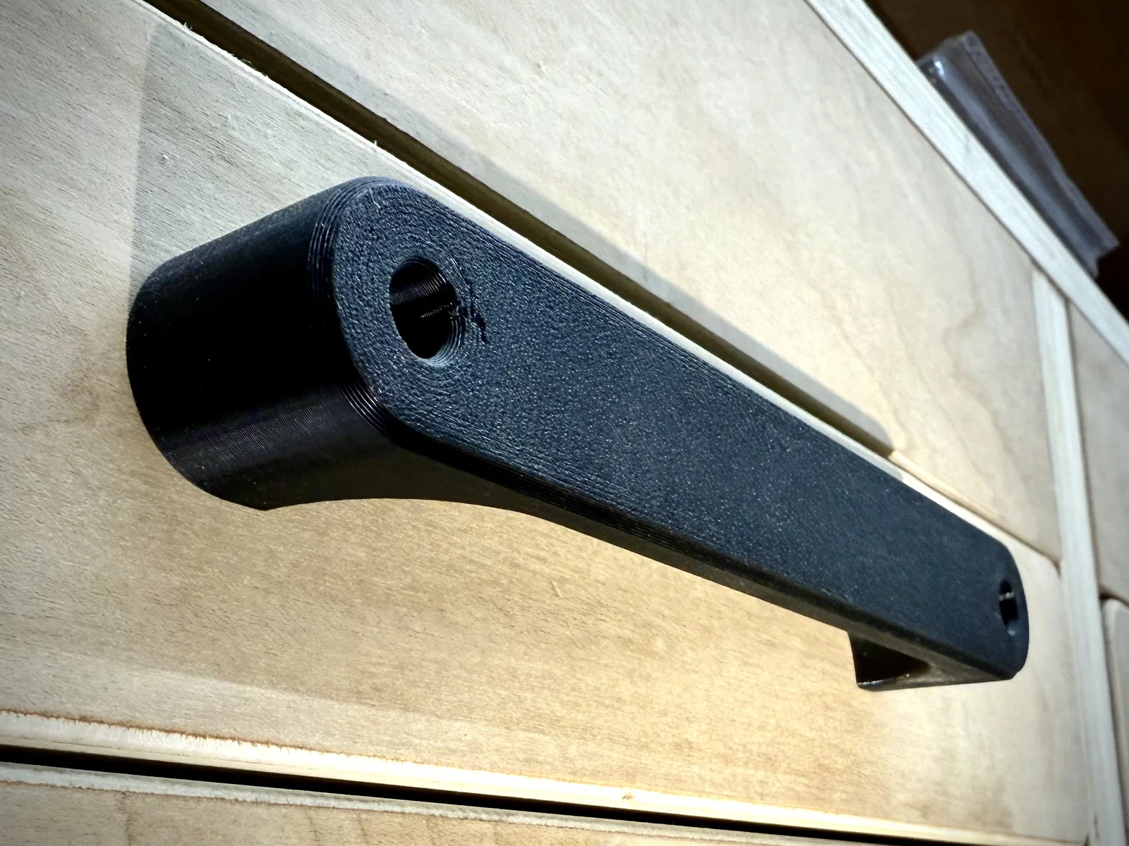Sản phẩm này được thiết kế để lắp đặt trực tiếp lên bề mặt tủ bằng hai vít gỗ tiêu chuẩn #6, mang đến độ chắc chắn và ổn định lâu dài. Phần dưới của tay nắm có một đường vát nhẹ tạo độ bám, giúp bạn dễ dàng đặt ngón tay vào để kéo ngăn kéo ra mà không gặp bất kỳ trở ngại nào. Dù bạn sử dụng trong xưởng làm việc, tủ quần áo hay bàn trang điểm, phụ kiện in 3D này chắc chắn sẽ làm hài lòng những người đam mê tự tay nâng cấp không gian sống.