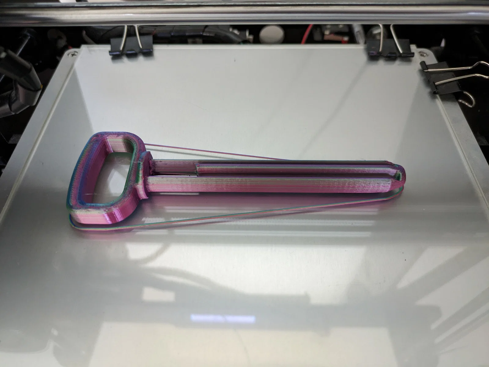 Bản này được chỉnh sửa nhẹ so với bản gốc, vì bản gốc cứ in trên máy của mình (dùng mặt kính/glass bed) là lần nào cũng bị bung khỏi bàn in. Mình dùng Blender thêm một khối cube đã scale để phần các lớp đáy được mở rộng, từ 3 đường mỏng thành một vùng hình chữ nhật duy nhất.