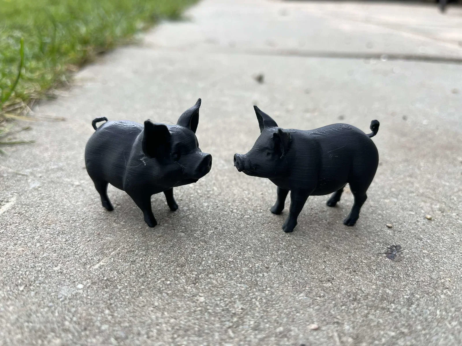 Bộ 2 chú heo con siêu dễ thương dành cho bối cảnh nông trại hoặc để trưng/chơi. Model rất hợp để nabar (sơn) và làm miniatures. Con nít cũng mê nữa. Có link Instagram, TikTok và Patreon để xem thêm.