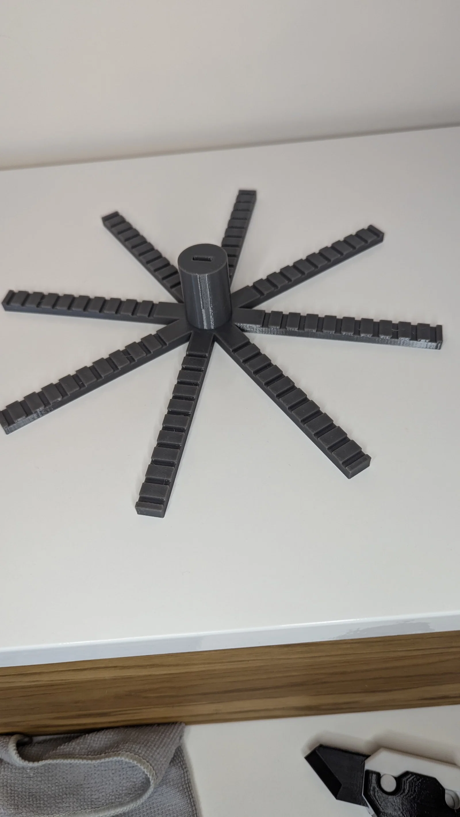 Phiên bản remix của giá trưng bày móc khóa từ @@NickR1983_763876. Mình đã chỉnh lại độ dày của phần trên, tăng số lượng khe treo móc khóa, và chỉnh tolerance (độ hở) giữa phần trên với thanh trụ ở giữa.