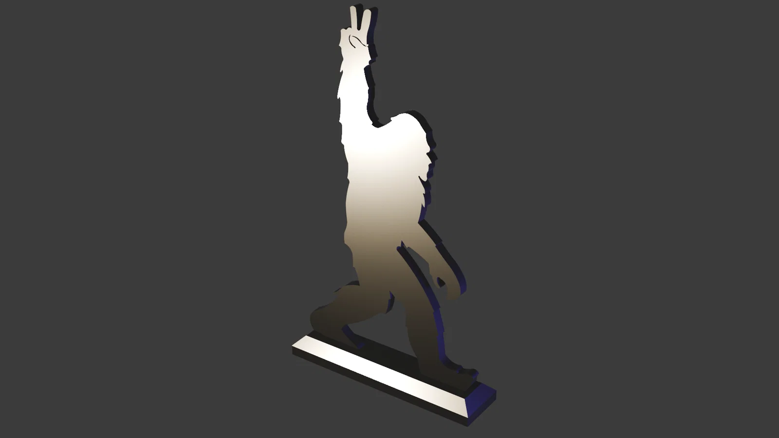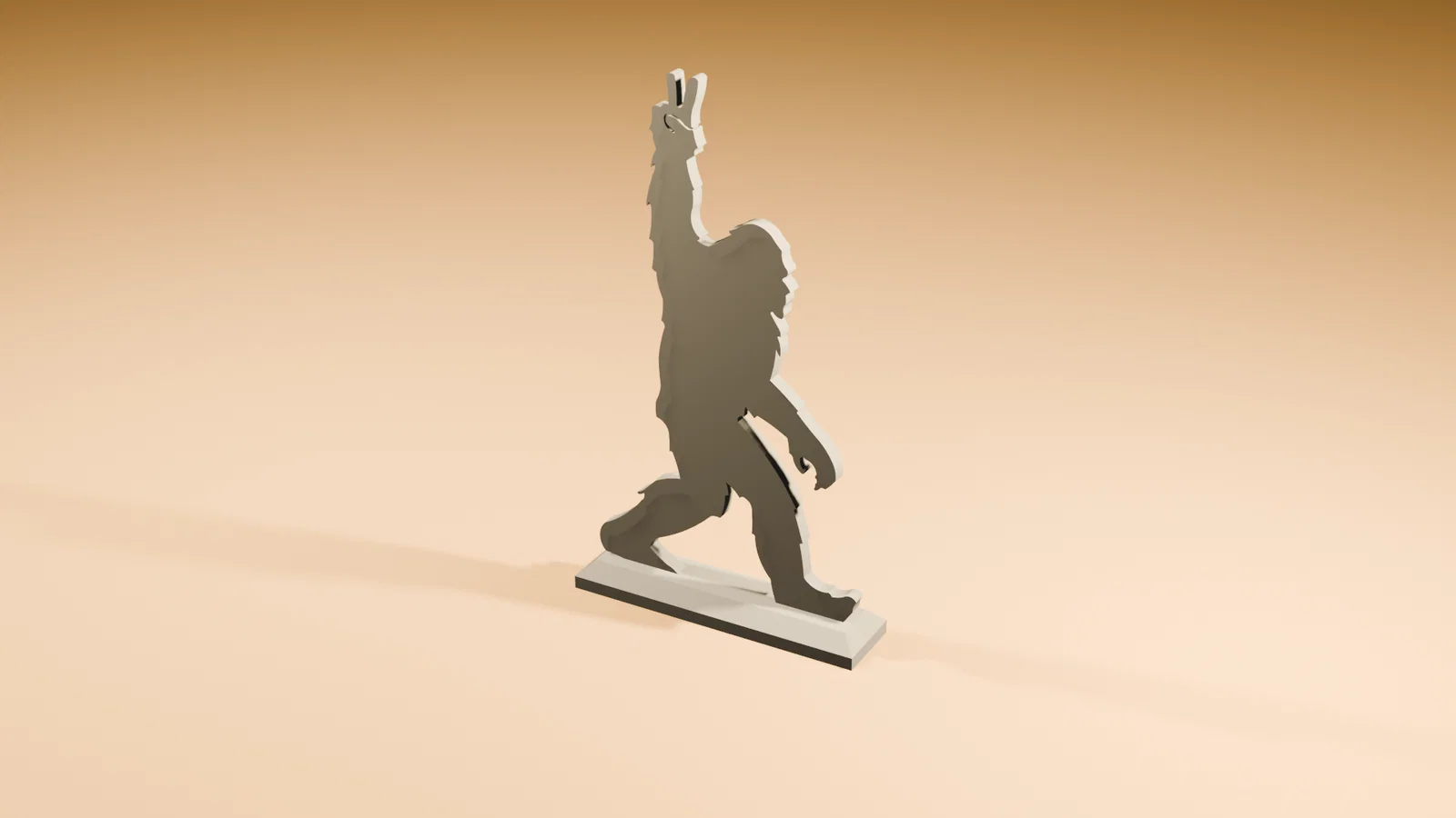Mẫu Peace-Sign Bigfoot đơn giản để trang trí kệ hoặc mặt bàn: Bigfoot đang bước đi và giơ dấu hiệu hòa bình. Có thể scale tùy ý; khi in nên dùng organic supports vì nhiều overhang, vệ sinh nhanh là trưng được.