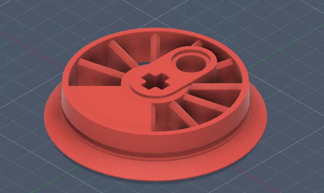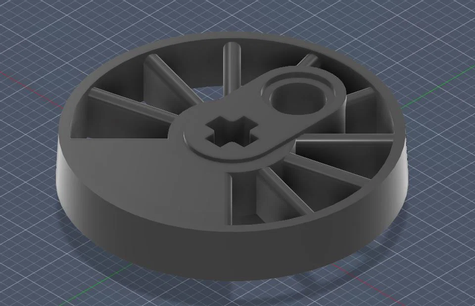 Không phải chỉ copy lại mấy món đúc nhựa (injection molded) sẵn; mình có chú ý để chi tiết in 3D chạy cho đúng. Phần flange làm dày hơn chút để tránh bị de-lamination. Lỗ pin và ổ trục (axle socket) hoạt động chuẩn. Sẽ cần một vòng o-ring 30x1.5mm để tăng độ bám.