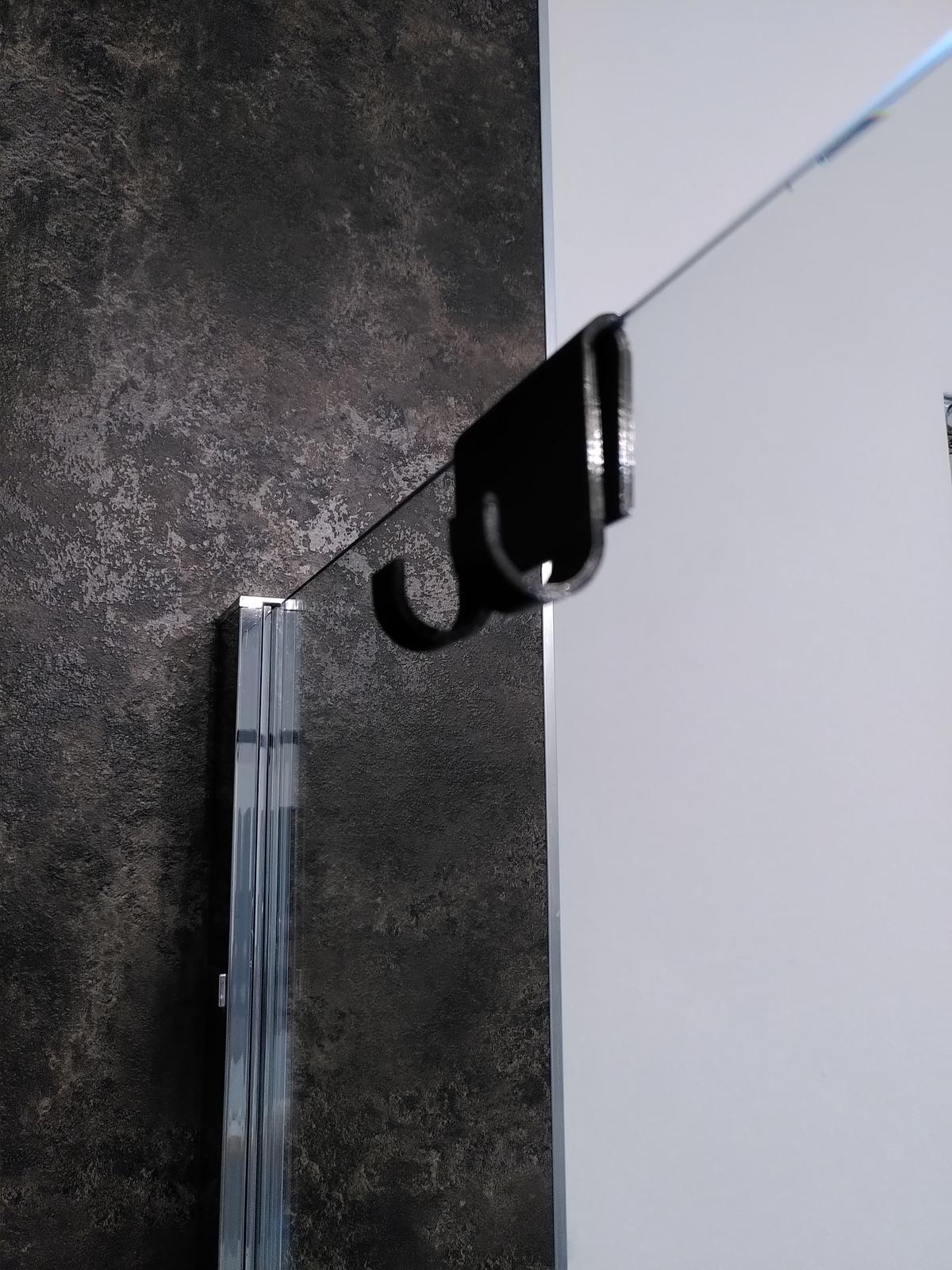 Giá treo (holder) đơn giản cho shower squeegee, kẹp lên vách kính phòng tắm dày 8–10mm. Khi in nên bật support cho phần khoét rãnh; thêm adhesion để bám bàn in tốt hơn.