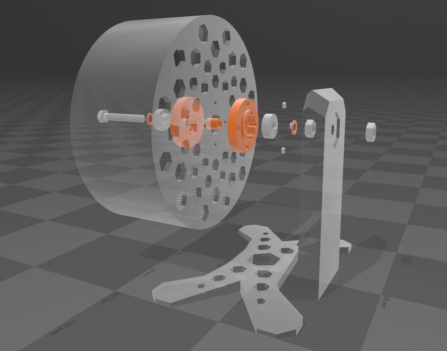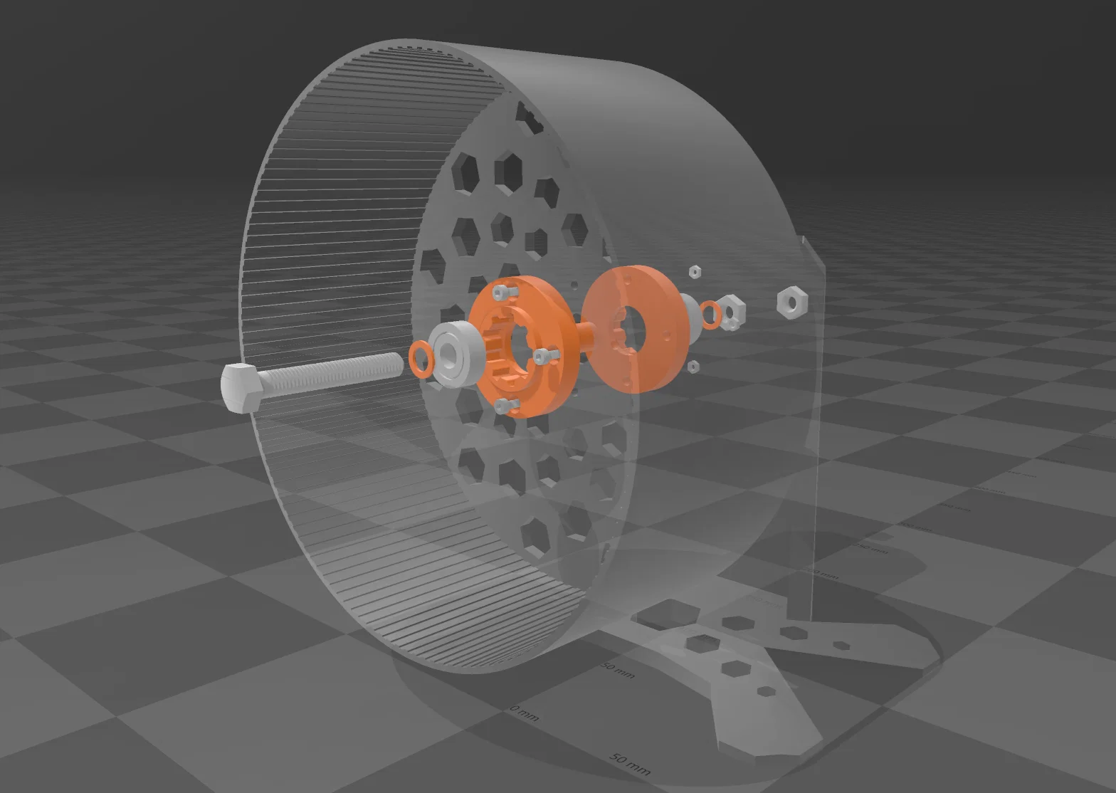 Bánh xe chạy 20cm cho hamster, mice và rats: chạy êm, vững và bền, thiết kế cho nhu cầu dùng lâu. Cần 608 ZZ bearings và ốc M3/M8; khuyên dùng PEGT, infill 35% (chi tiết nhỏ 85%).