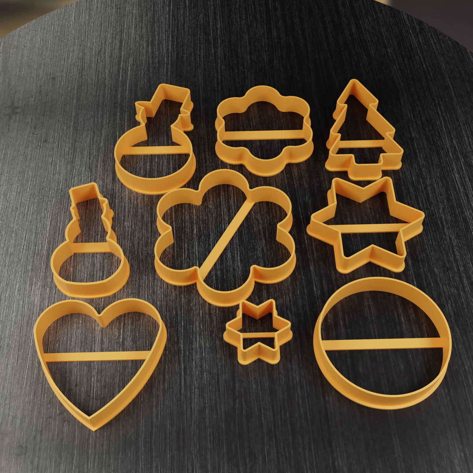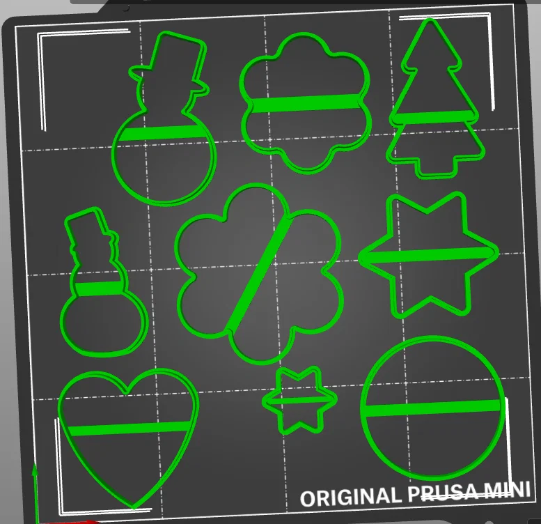 Bộ khuôn cắt bánh quy Giáng Sinh gồm đầy đủ các hình cần thiết, mỗi khuôn 50 mm (cao 10 mm, dày 0.8 mm). Tất cả nằm gọn trên một print bed, in một lần là xong dưới 50 phút. Khuyến nghị PLA/PETG.