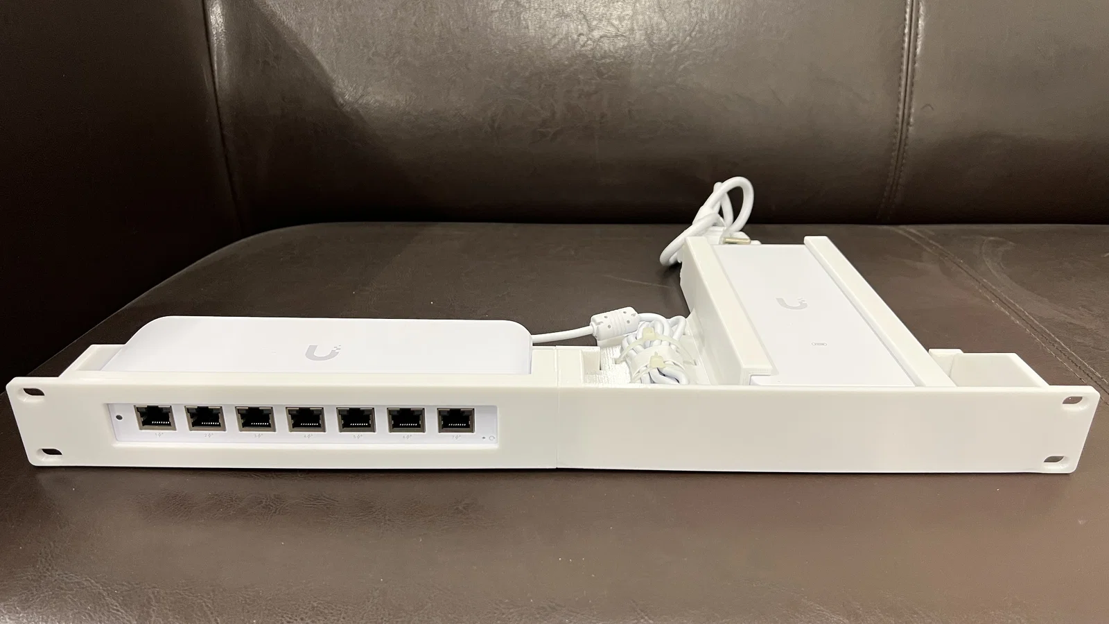 Sản phẩm này được thiết kế thông minh với các khe cắm vừa vặn, đảm bảo giữ chắc chắn cả thân switch và bộ nguồn đi kèm. Phần không gian ở giữa được tính toán kỹ lưỡng để bạn có thể đi dây cáp nguồn gọn gàng, tránh tình trạng dây nhợ rối rắm gây mất thẩm mỹ hoặc khó quản lý trong tủ rack. Đây là giải pháp hoàn hảo cho những người dùng hệ sinh thái UniFi muốn xây dựng hệ thống mạng tại gia hoặc trong văn phòng nhỏ một cách ngăn nắp nhất.