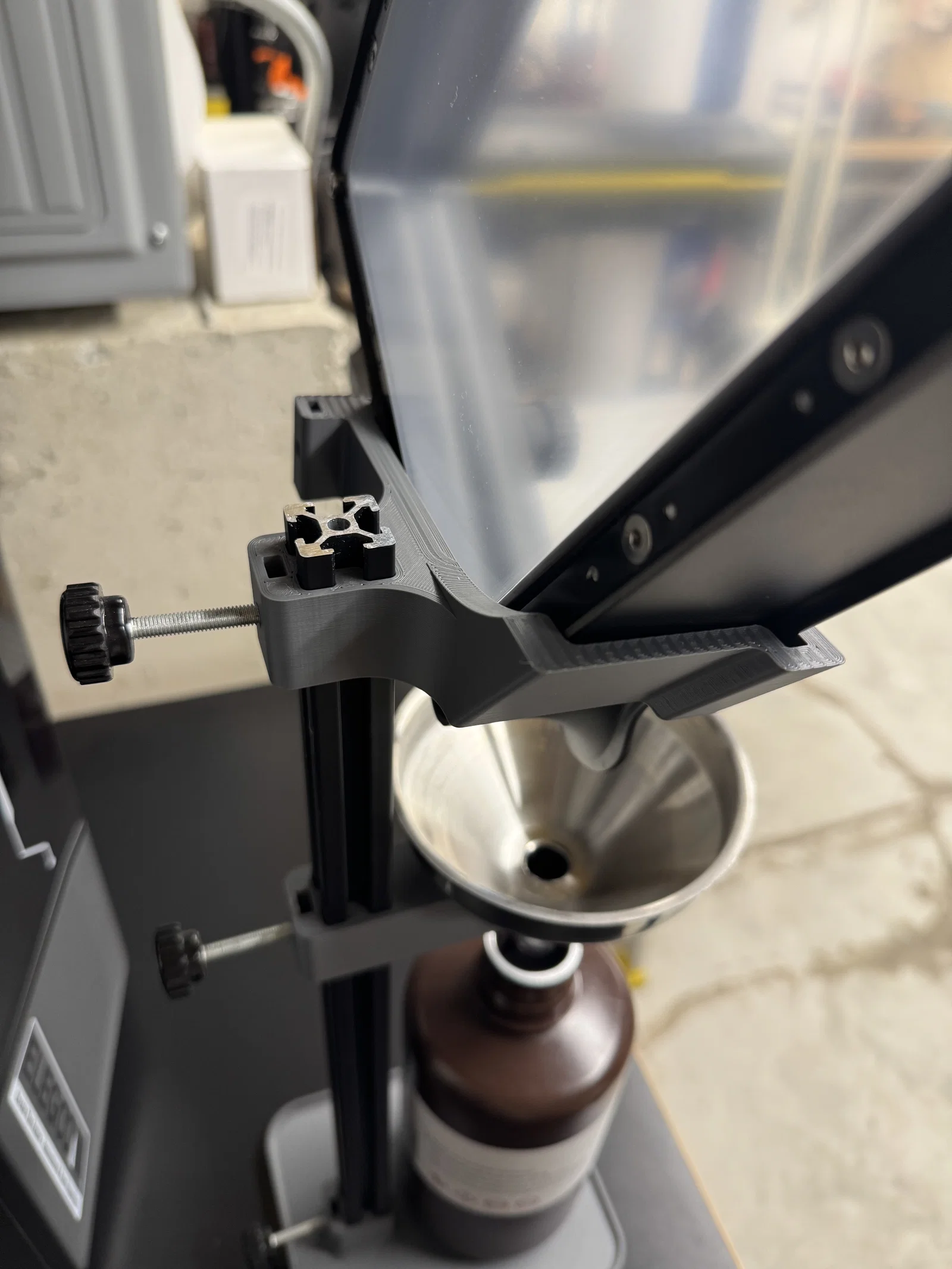 Dùng lại phần đế rộng bản gốc, rồi thay bằng các file Saturn 4 vat holder và funnel mới từ thiết kế này. Bản remix này vẫn dùng cùng nhôm định hình 2020 dài 400mm và bộ hardware lắp đặt (M5).