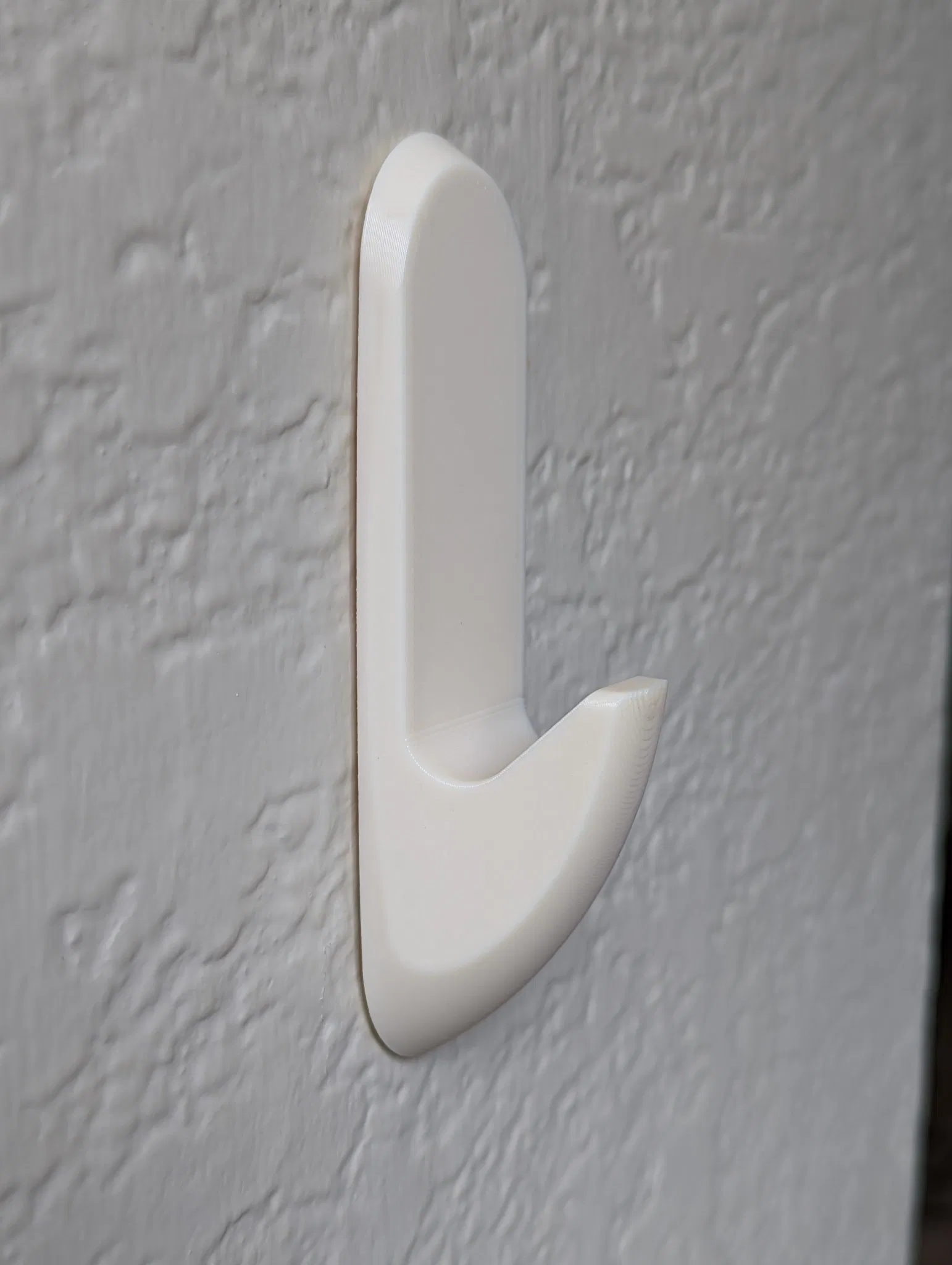 Một cái móc tường đơn giản với hốc ở mặt sau cho các dải lệnh Velcro kích thước lớn (khoảng 20 mm x 95mm)