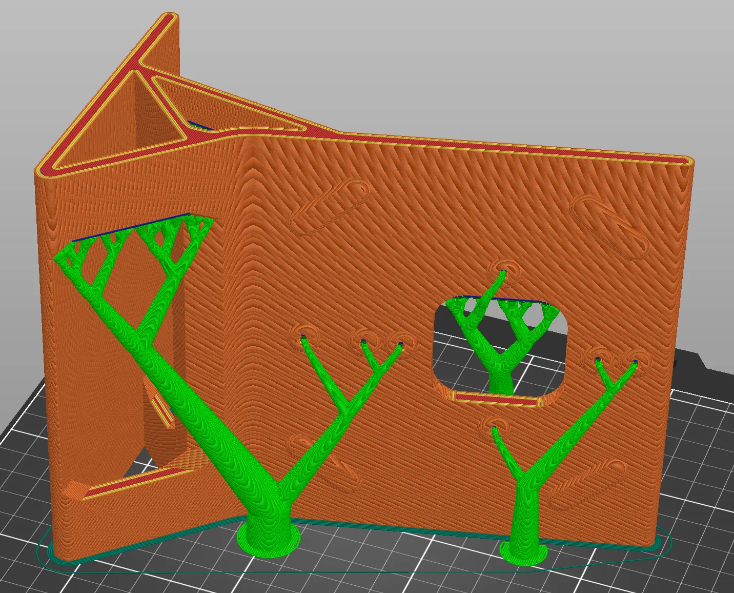 - Mình khuyên dùng tree supports với threshold angle 35–40° như trong hình