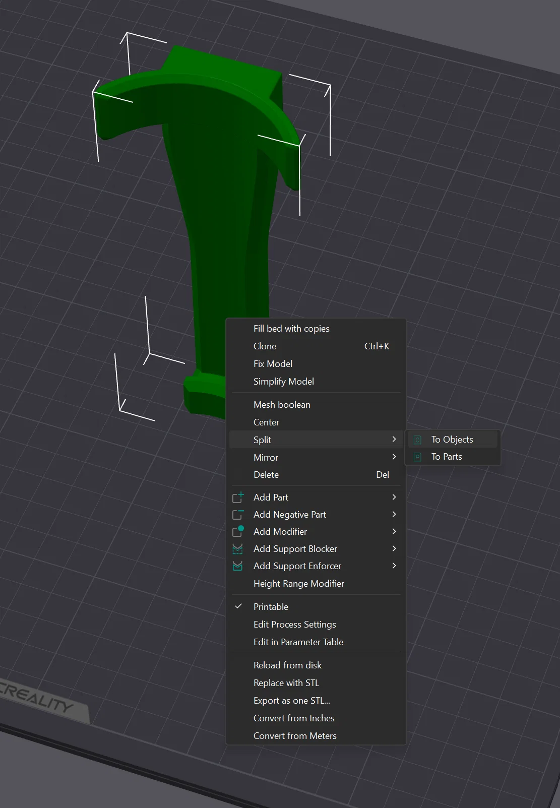 Mình có đính kèm file .step vì các slicer phổ biến đều có thể mở được. Với Orca Slicer, sau khi bạn add 1 file .step vào, nhớ click chuột phải lên model, kéo xuống Split, chọn To Objects rồi bạn có thể di chuyển các phần ra cho dễ sắp xếp.