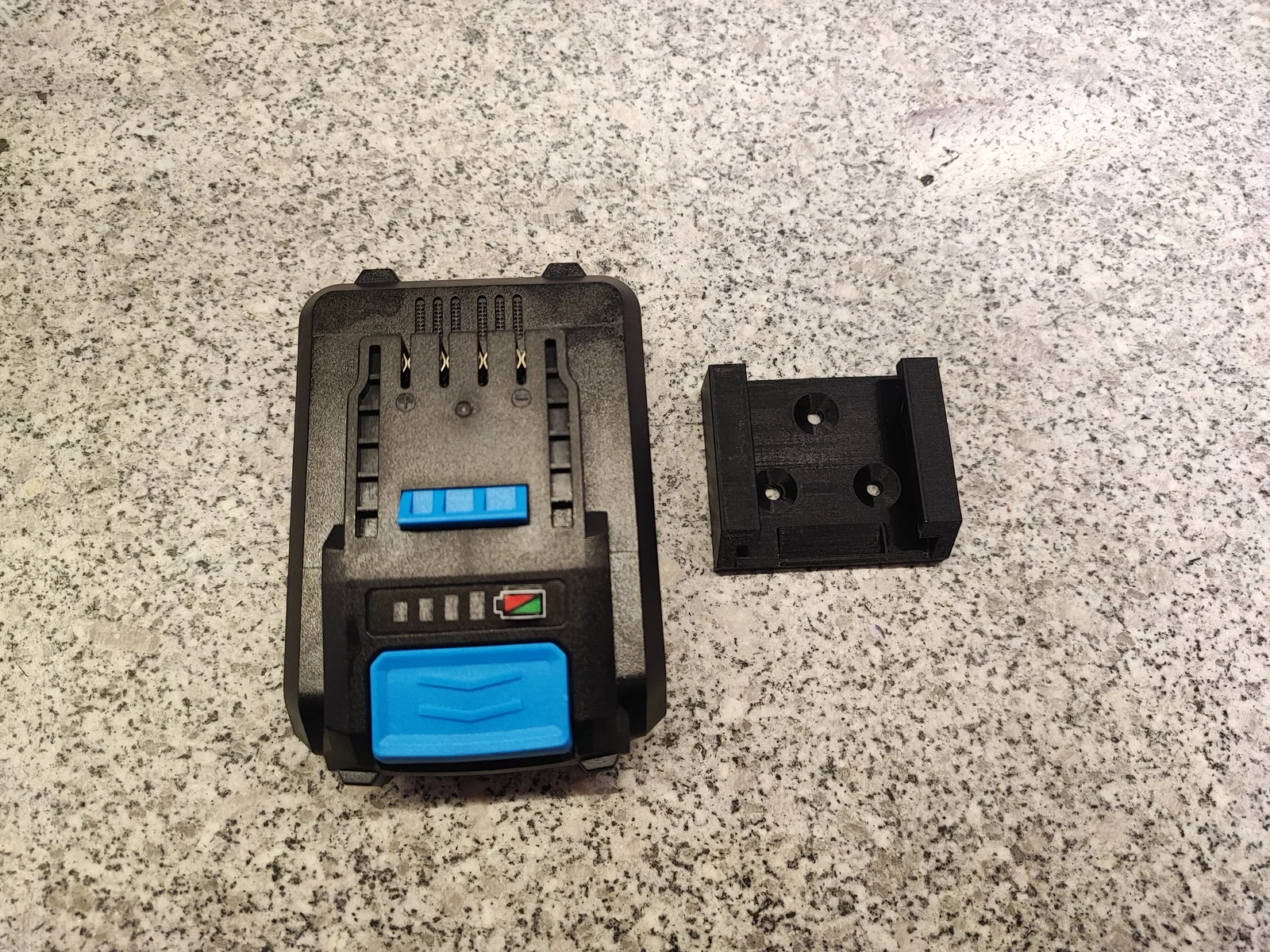 Giá đỡ pin dự phòng cho hệ pin MacAllister SOLO 18V MBAT18-2 (Castorama/Kingfisher). Đã test với pin 2.0Ah; bản 1.5Ah và 4Ah cũng dùng được. Có nhiều phiên bản: Click/NonClick, Straight/Angled.