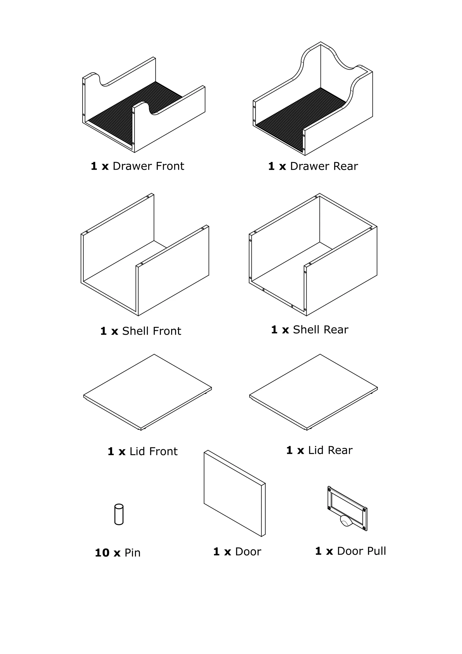 - Dài 296mm (split) – bản đủ dài nhưng đã chia part để in được trên mọi máy