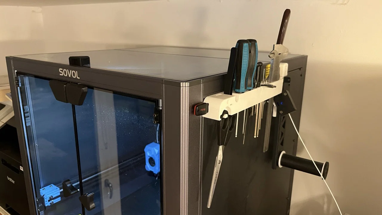 Một tool holder gắn cố định cho máy in Sovol SV08 để cất các dụng cụ đi kèm, USB sticks và cả calipers.
