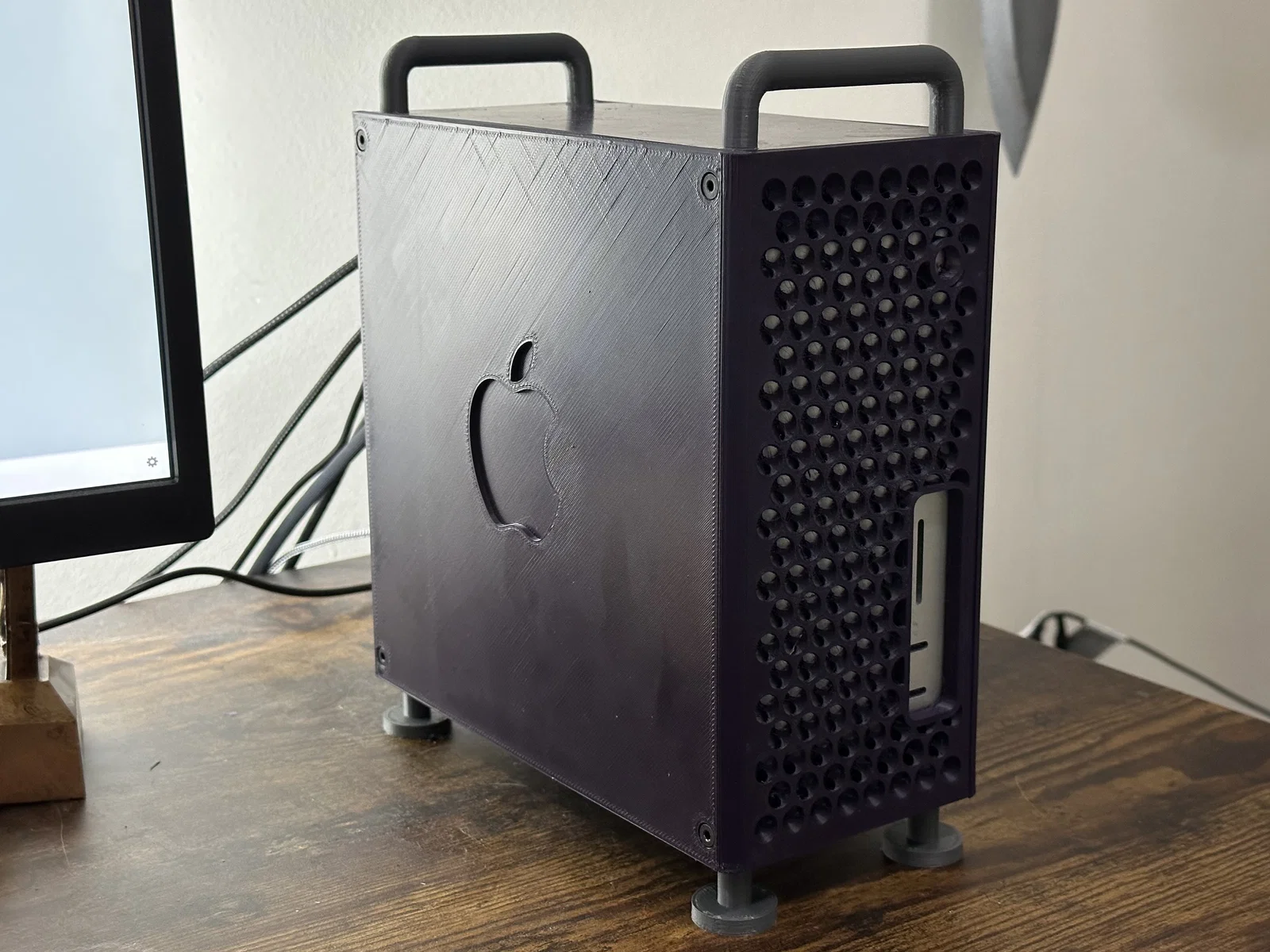 Bộ vỏ cho Mac Studio giúp máy nhìn như một Mac Pro (2019) thu nhỏ. Thiết kế chừa thoáng khe hút/thoát gió và cổng trước, dễ in trên bed 220×220 mm, lắp bằng ốc M4 hoặc keo (khuyến nghị dùng ốc).