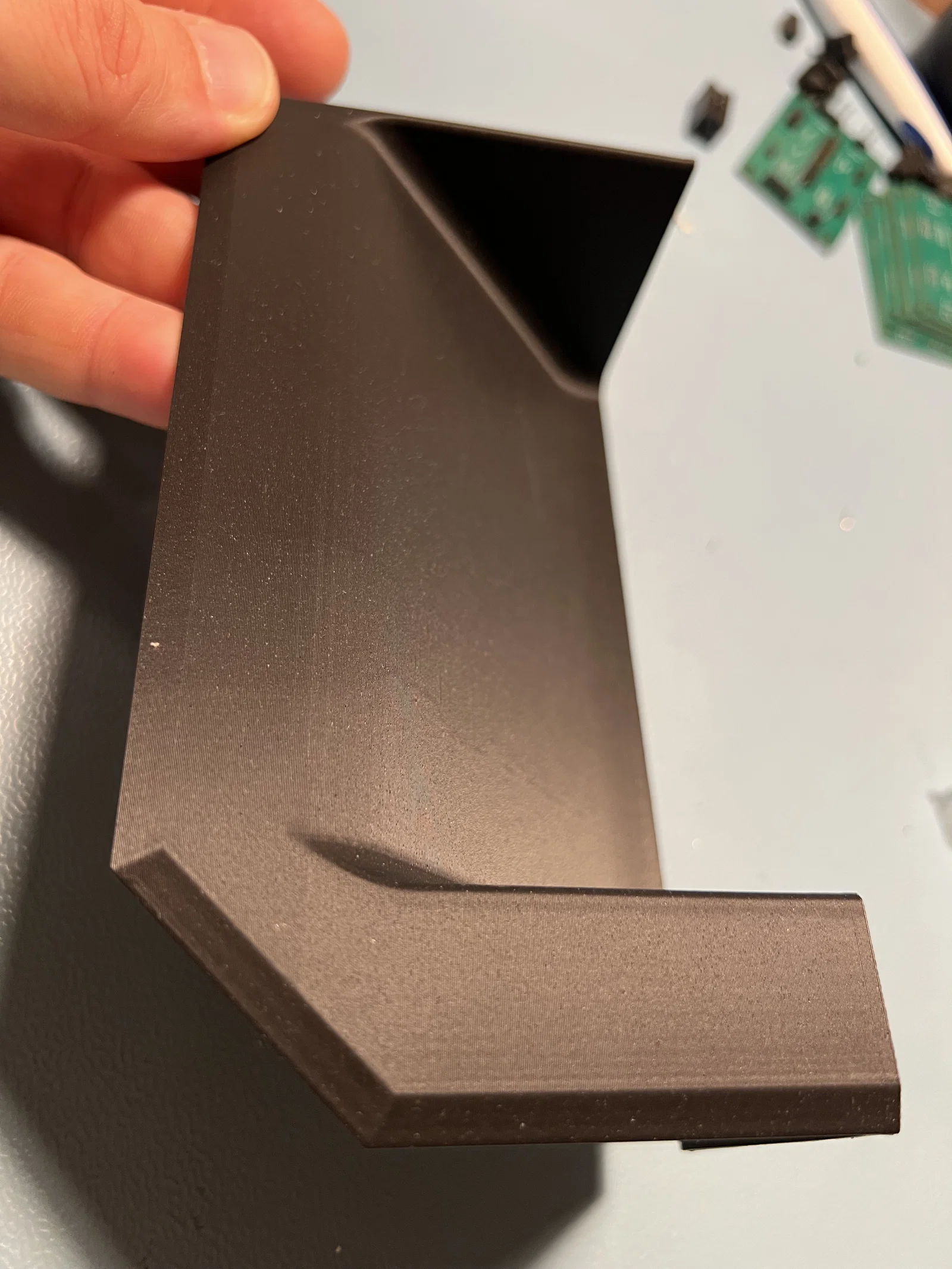 Mình cũng làm phần hông đối xứng với mặt trước, thêm nhiều chamfer hơn để tăng độ bền, và thêm nam châm để nó gắn vào fan rail. Chỉ cần 3 viên nam châm là đủ giữ chắc tại chỗ.