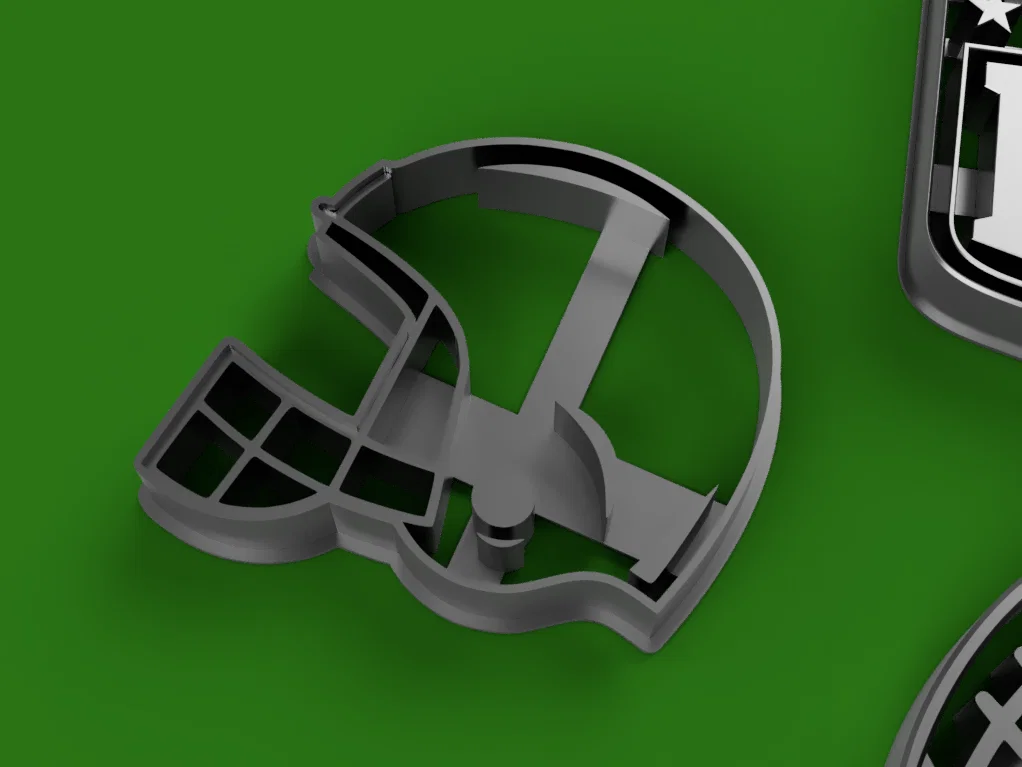 Bộ khuôn cắt bánh quy chủ đề NFL, in dễ và cho chi tiết rõ. Nên tăng perimeters thay vì infill để cứng cáp hơn. Dùng cookie dough mịn; nếu bột dính, có thể dùng que hoặc tăm để gỡ bột ra.