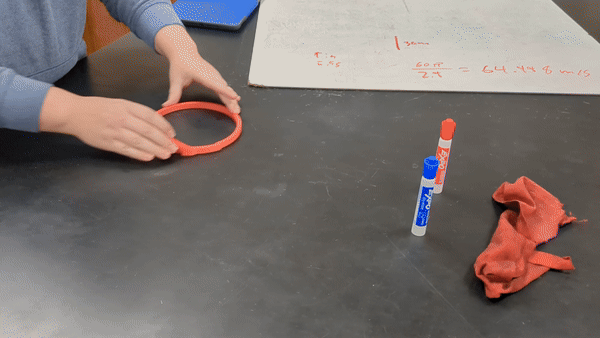 Một bộ Tangential Velocity Launcher để minh hoạ rằng một vật sẽ chuyển động theo tiếp tuyến của quỹ đạo ngay khi nó rời khỏi đường tròn.