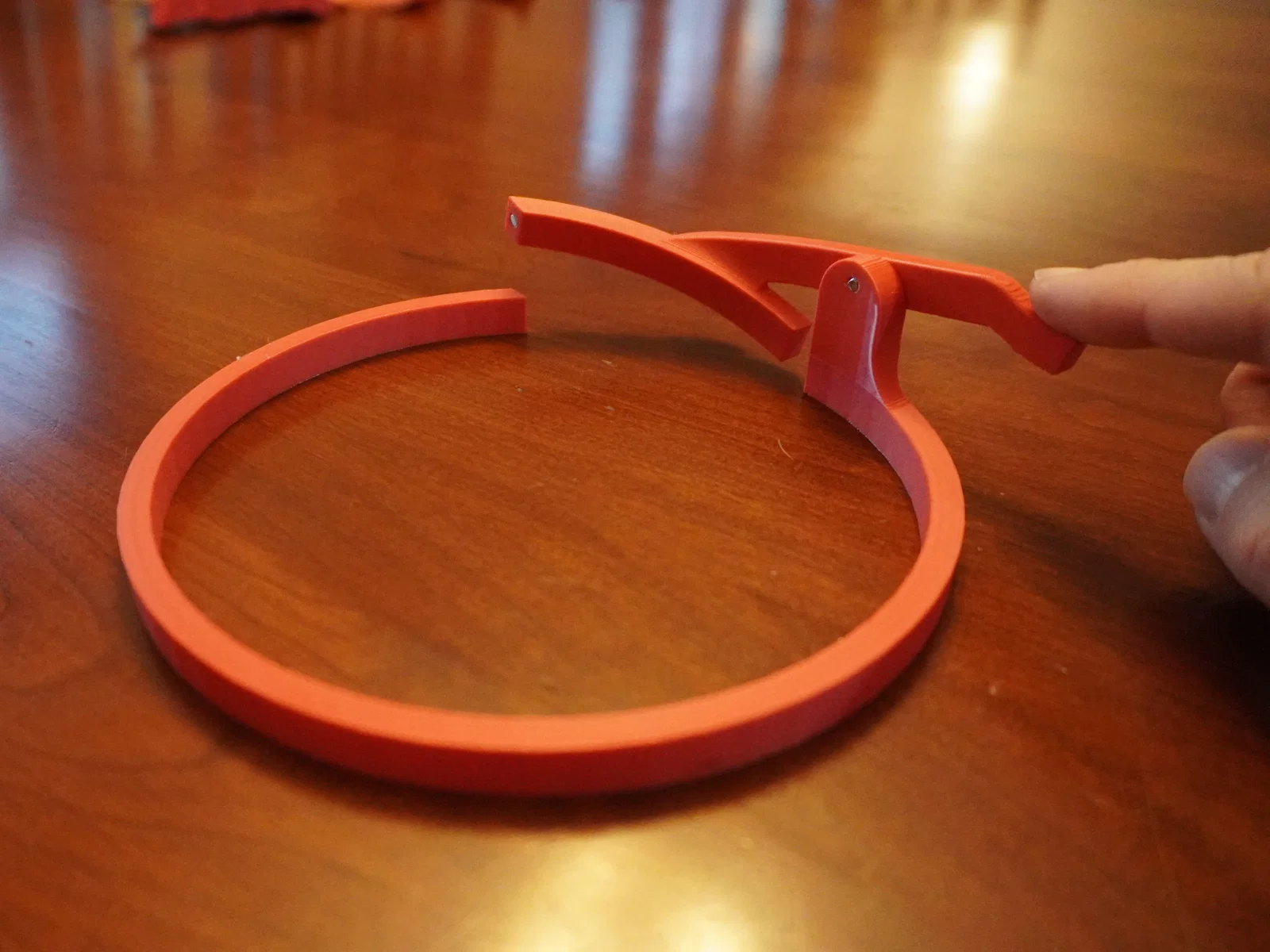 Để giữ phần vòng khép lại khi cổng đang đóng (gate down), có hai nam châm neodymium 3x1 mm được dán keo siêu dính (superglue) vào các lỗ âm (recessed holes) đã được thiết kế sẵn trên hai mặt kề nhau.