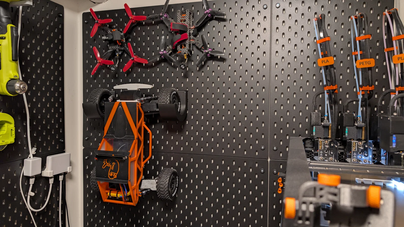 Kệ/giá đỡ này được thiết kế để treo xe RC tỉ lệ 1:10 trực tiếp lên pegboard IKEA Skådis. Xe được treo chắc chắn bằng chính lốp xe, và phần kệ đã được tối ưu cho lốp có đường kính 110 mm.