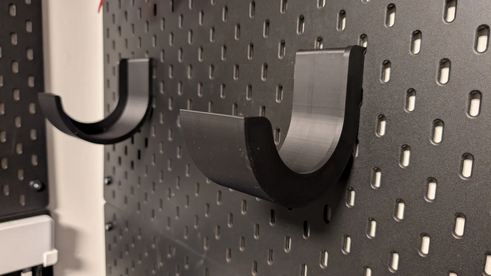 Giá treo cho xe RC tỉ lệ 1:10, treo trực tiếp lên pegboard IKEA Skådis. Giữ xe chắc bằng lốp, tối ưu cho lốp đường kính 110 mm; phù hợp để cất gọn và trưng bày tiết kiệm không gian.