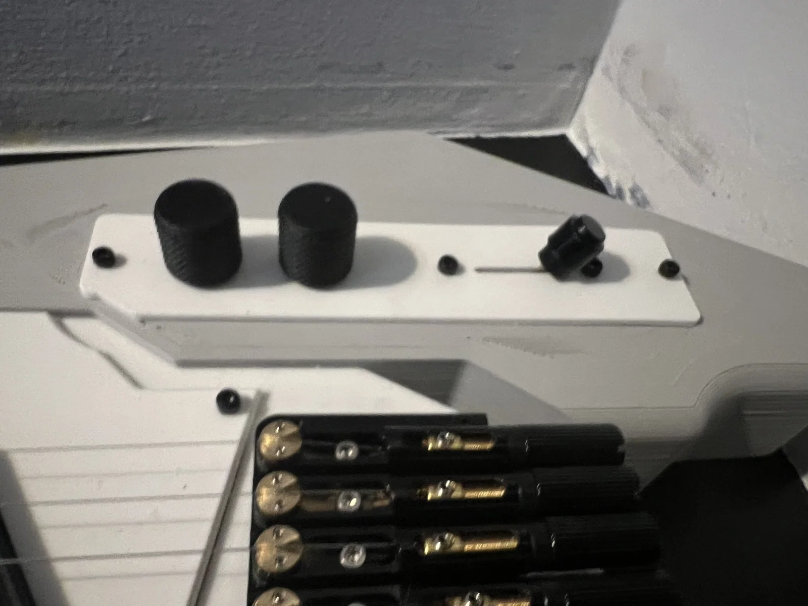 Toàn bộ cây đàn dùng ốc M3. Mình rất thích kiểu ốc đen đầu trụ lục giác (black socket cap screws), nên một số lỗ bắt ốc trong thiết kế không làm vát miệng (chamfer).