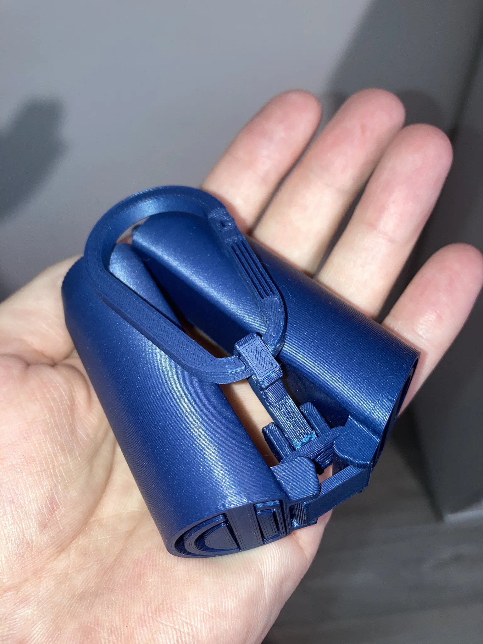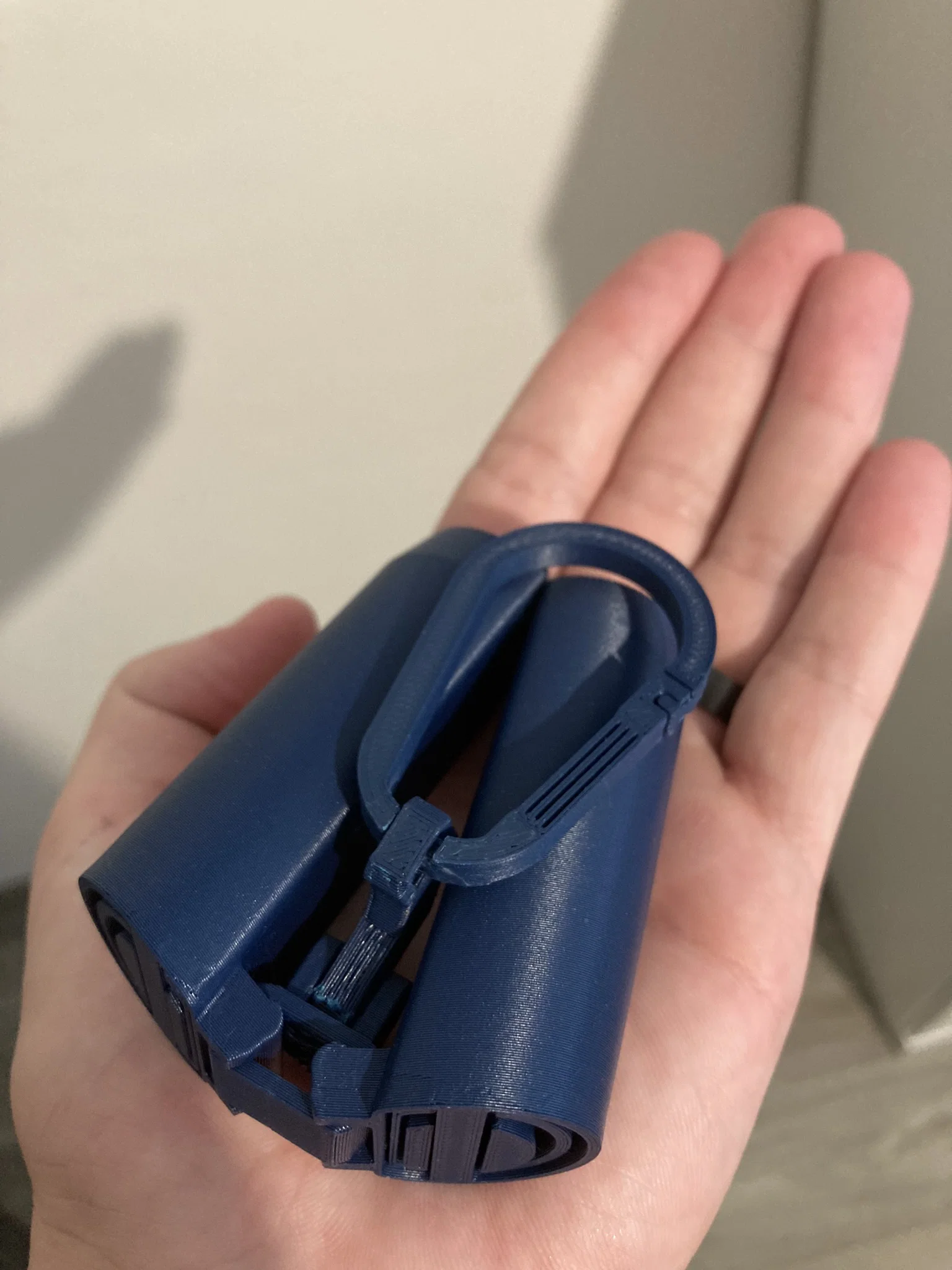 Ramínko gấp gọn mini có carabiner, khi gấp lại nằm gọn trong lòng bàn tay. Thiết kế telescopic, in nguyên khối print in place không cần supports. Rất hợp mang đi du lịch, camping, hiking; chỉ cần tải STL và in là dùng được.