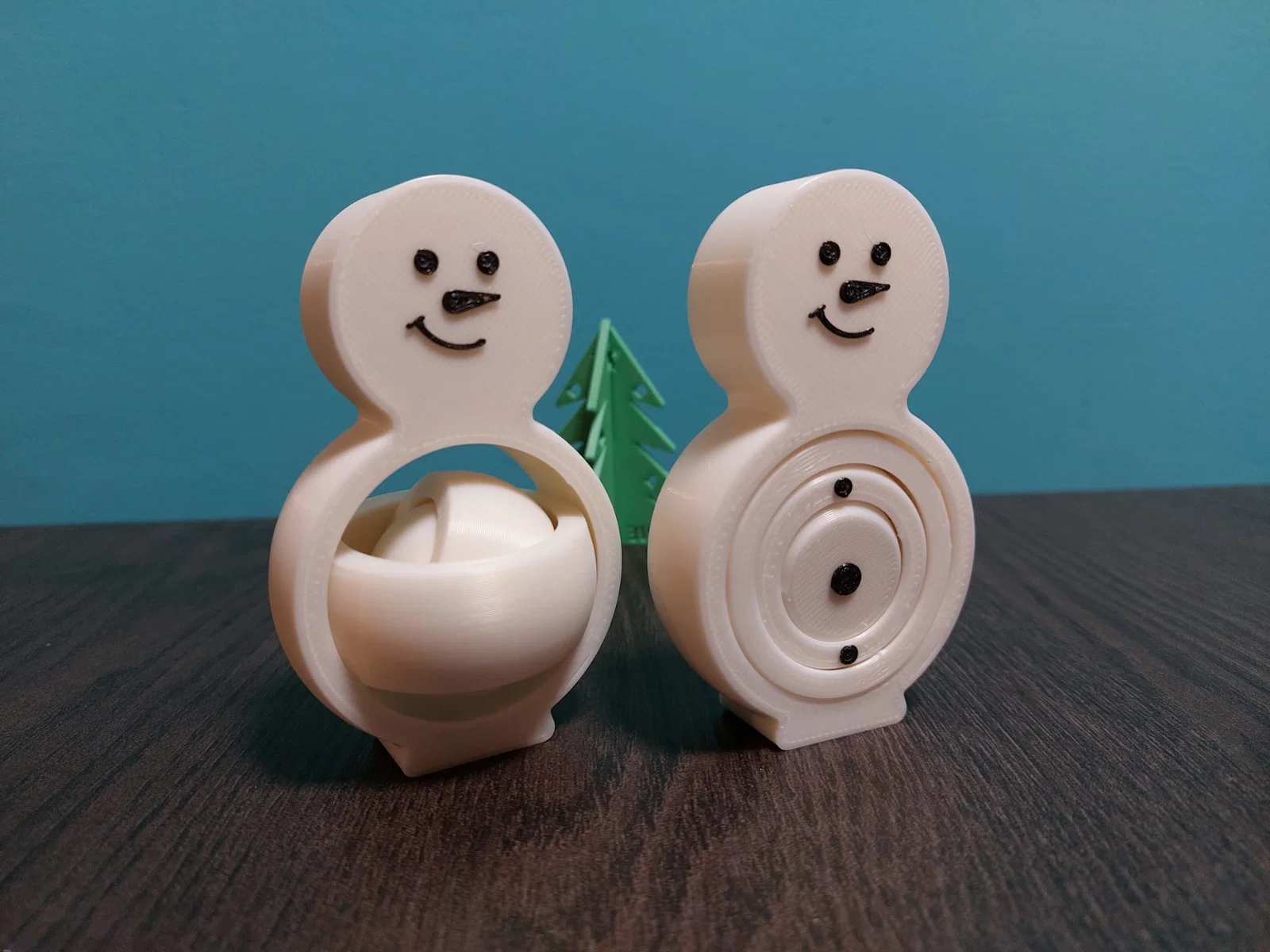 Mẫu Snowman Ring Figdet là fidget nhiều vòng hình người tuyết, thiết kế print in place. Mặt và nút áo nhô 0.6mm nên dễ filament change để lên màu. Có cả bản không mặt; hợp làm quà Noel.