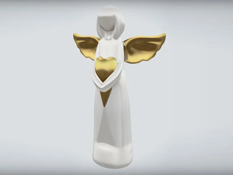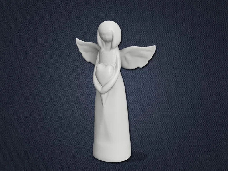 Mẫu tượng thiên thần tối giản ôm trái tim ❤ Phù hợp trang trí Giáng Sinh, làm quà tặng hoặc kỷ vật tưởng nhớ người thân. Cao khoảng 188 mm, layer 0,2 mm, cần supports, in PLA/PETG, có thể scale.