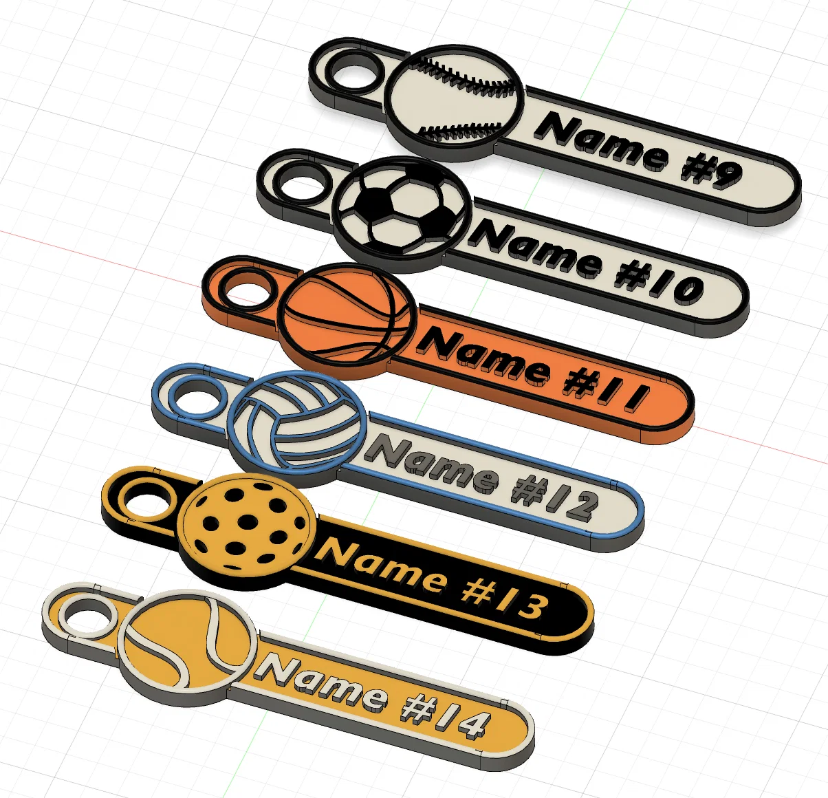 Lấy cảm hứng từ thiết kế gốc quá xịn của @sstevenson72, mình bổ sung thêm nhiều lựa chọn môn thể thao cho bản in 3D nhanh – gọn – dễ này. Thiết kế tối giản, rất hợp để cá nhân hóa túi gym hoặc đồ dùng thể thao của bạn.