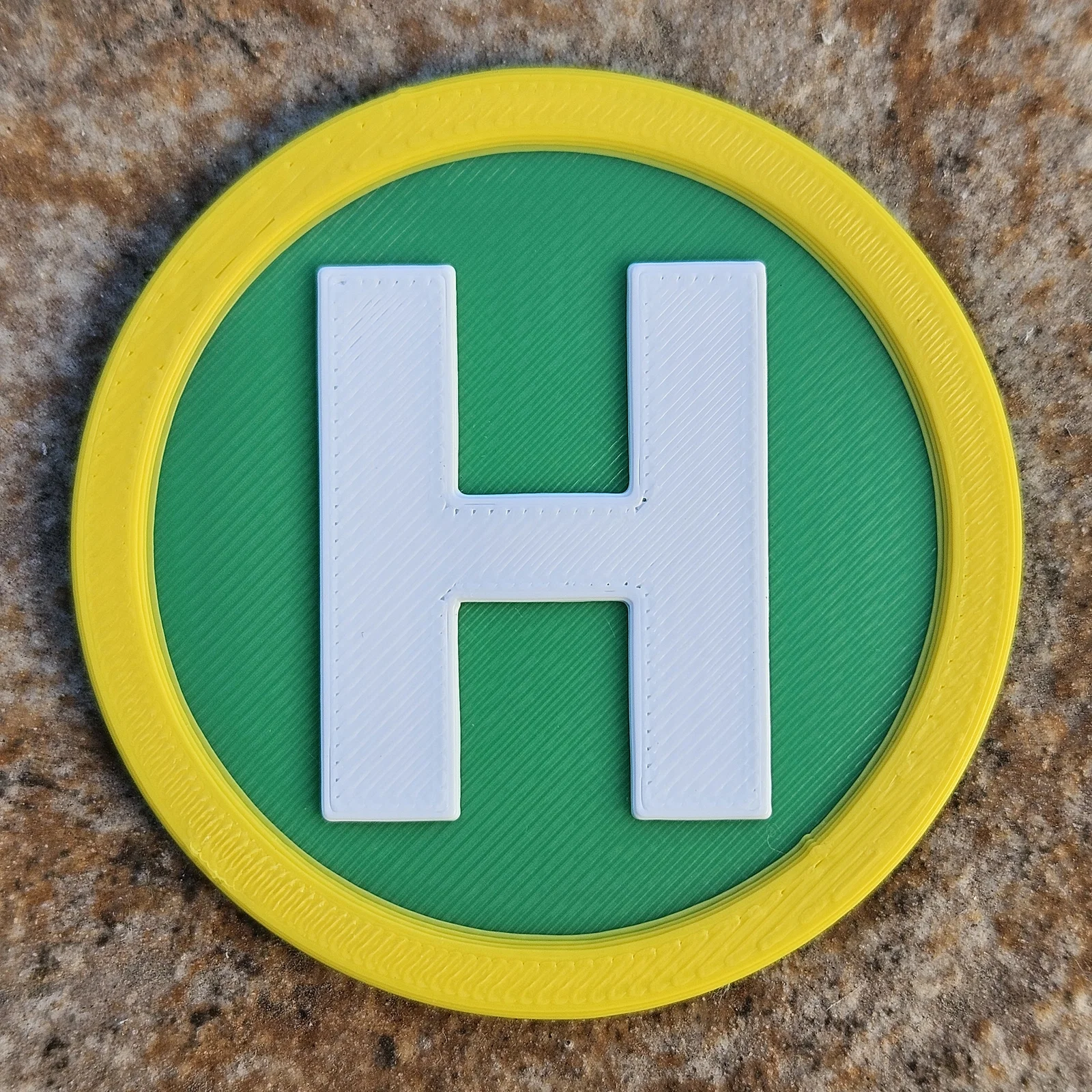 Helipad Disk là đĩa bãi đáp trực thăng (60×60×3 mm) thiết kế cho city-themed 2024 Christmas Community Print Drive. Tối ưu in 2 màu bằng filament swap, cũng ổn khi in 1 màu hoặc set up 3 màu (có bản tách 3 phần).