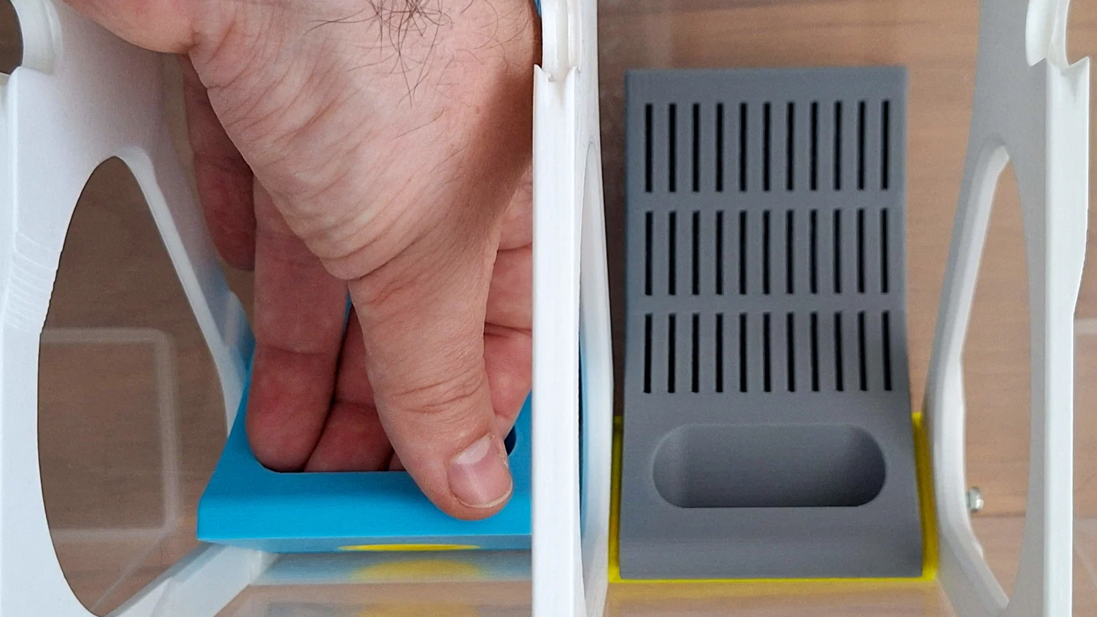 - Lỗ châm silica gel lớn, được khóa bằng nắp vặn in 3D